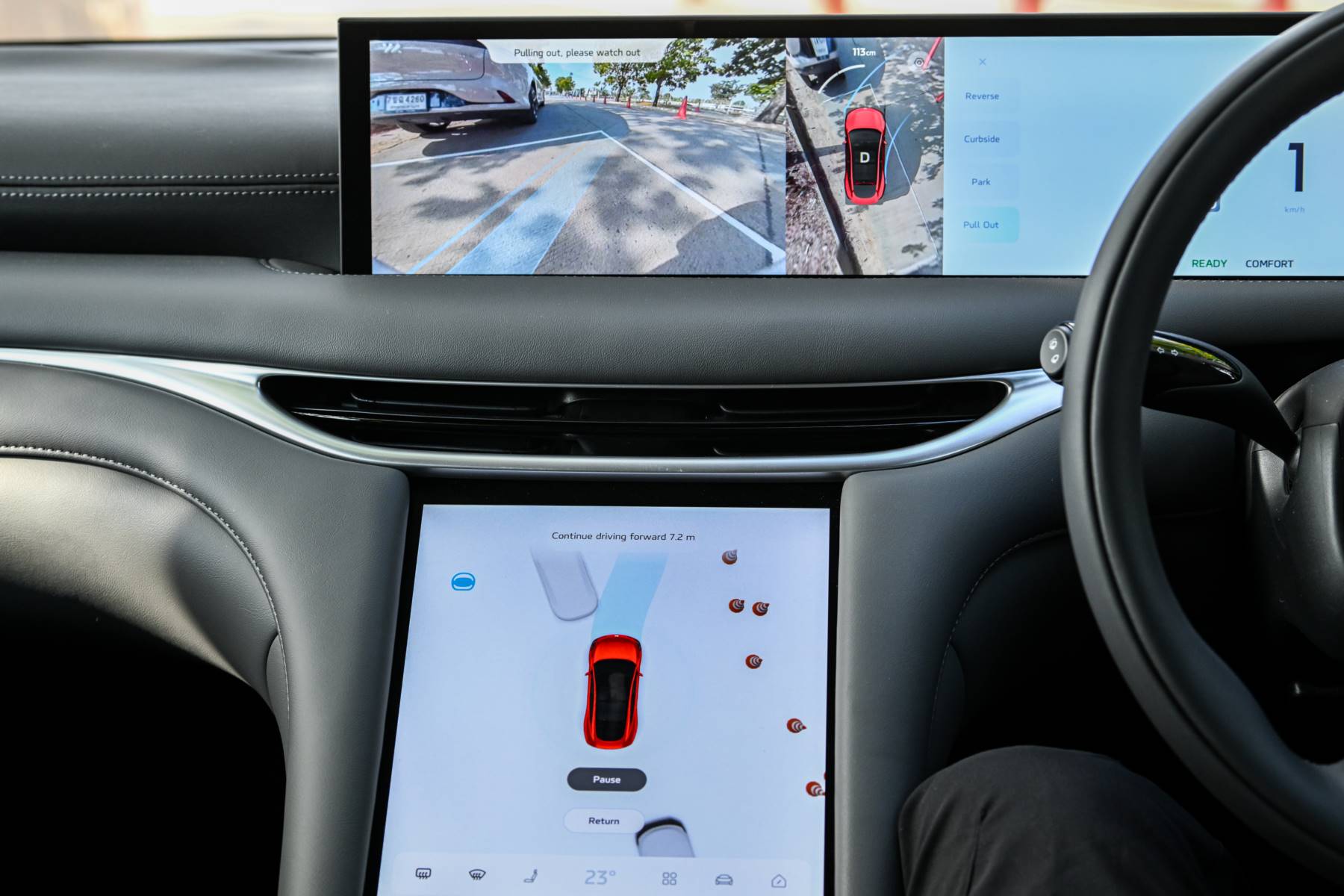 - ระบบช่วยจอดรถอัจฉริยะ ครอบคลุมทั้ง PDC (Park Distance Control) และ APA (Auto Park Assist) ที่มาพร้อมเซ็นเซอร์ กล้อง และเรดาร์รอบคัน มากถึง 24 ตำแหน่ง