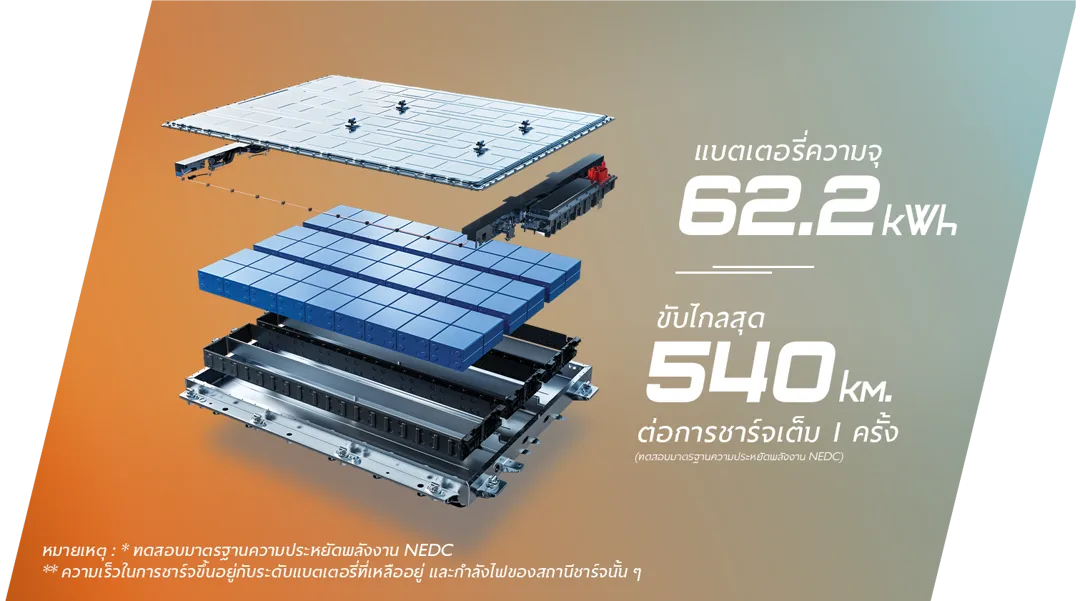 แบตเตอรี่ใหม่: เปลี่ยนเป็นแบบ LFP 62.2 kWh (จาก CATL)