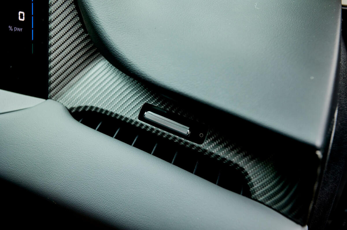 - เพิ่มแถว สวิตช์/ปุ่มกดจริง ใต้จอ พร้อมปุ่มหมุนที่คาดว่าใช้ควบคุม พัดลม และ ระดับเสียง เพื่อให้ปรับได้เร็วโดยไม่ต้องจิ้มจอ