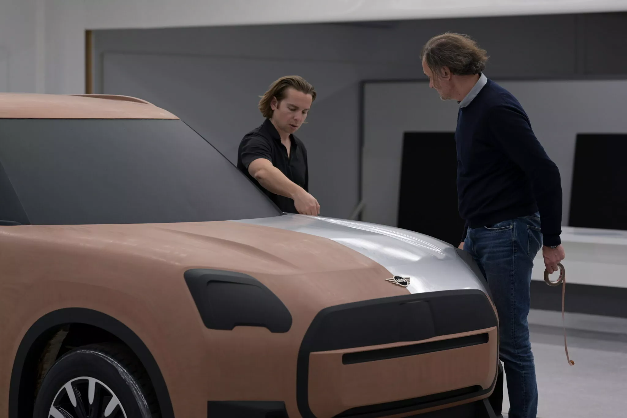 Countryman ใหม่เป็นหนึ่งในโมเดลการผลิตรุ่นแรกๆ ที่ใช้ภาษาการออกแบบใหม่ของ Mini ที่เรียกว่า ” Charismatic Simplicity ” องค์ประกอบการออกแบบหลักของรุ่นก่อนยังคงอยู่ โดยมีเส้นโค้งน้อยลงและเส้นสายที่คมชัดยิ่งขึ้นบนตัวถัง กระจังหน้าใหม่แบบแปดเหลี่ยมที่ใหญ่ขึ้น กระจังหน้าส่วนใหญ่จะเป็นสีเดียวกับตัวรถก็ตาม ไฟหน้า LED ทรงกลงเหลี่ยมที่เล็กลง หลังคาแบบฝาครอบลอยตัวและเรือนกระจก “แถบสีดำเส้นรอบวง” ที่มีขอบเข็มขัดแนวนอนยังคงอยู่ ในขณะที่การออกแบบเสา C ที่ชัดเจน ล้ออัลลอยขนาด 20 นิ้ว และ 17 นิ้วตามเกรดรุ่น ไฟท้ายแบบ Matrix LED แนวตั้ง
