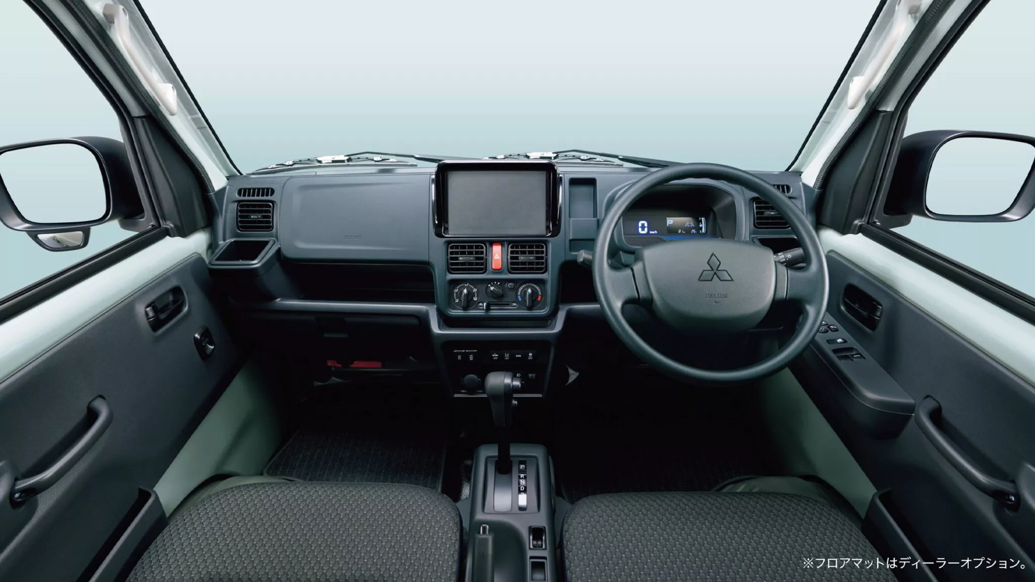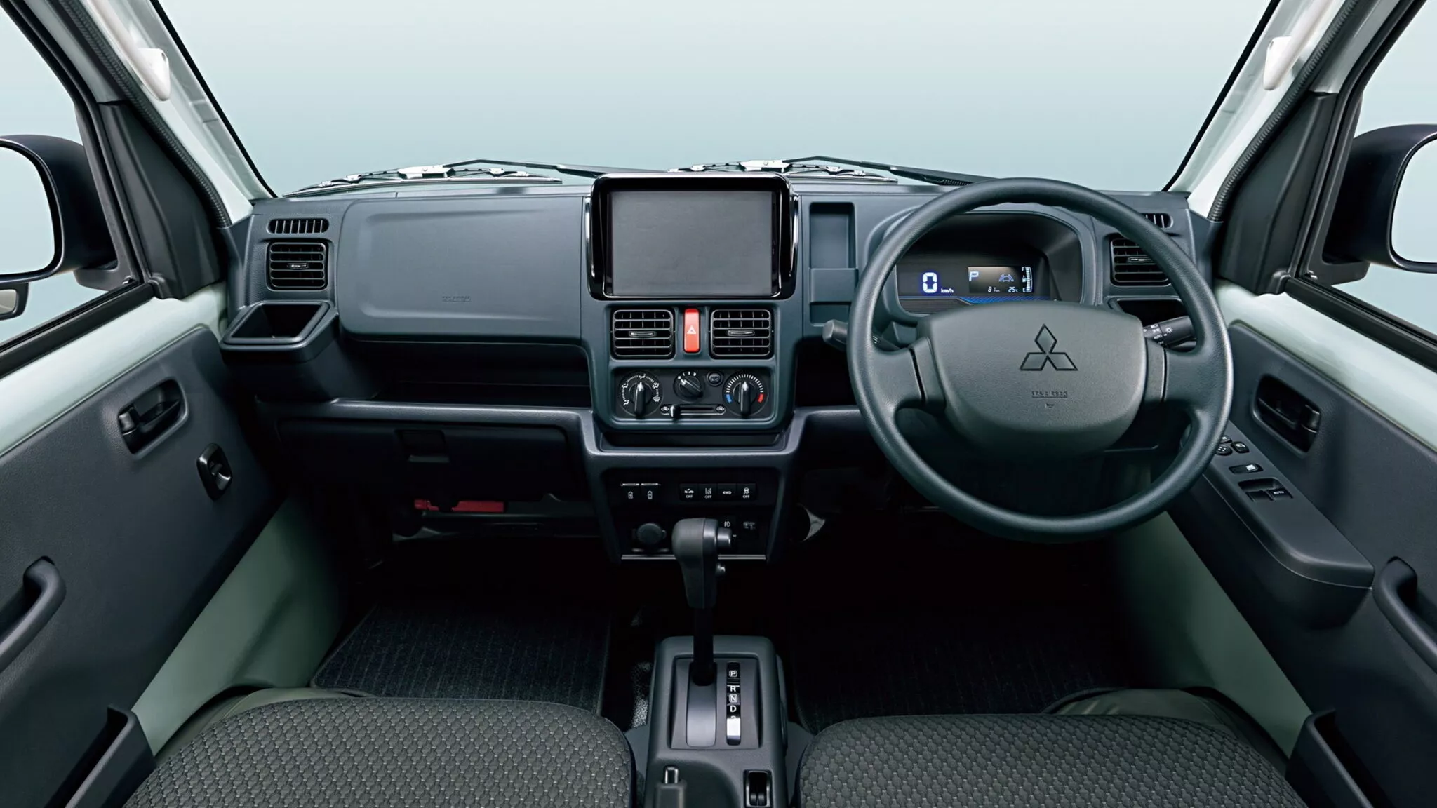 ห้องโดยสารของ Mitsubishi Minicab Truck 2026 ถูกออกแบบมาเพื่อความสะดวกสบายของผู้ขับขี่ที่ต้องใช้งานรถเป็นเวลานาน โดยเน้นความทันสมัยและการจัดวางอุปกรณ์ที่หยิบจับได้ง่าย