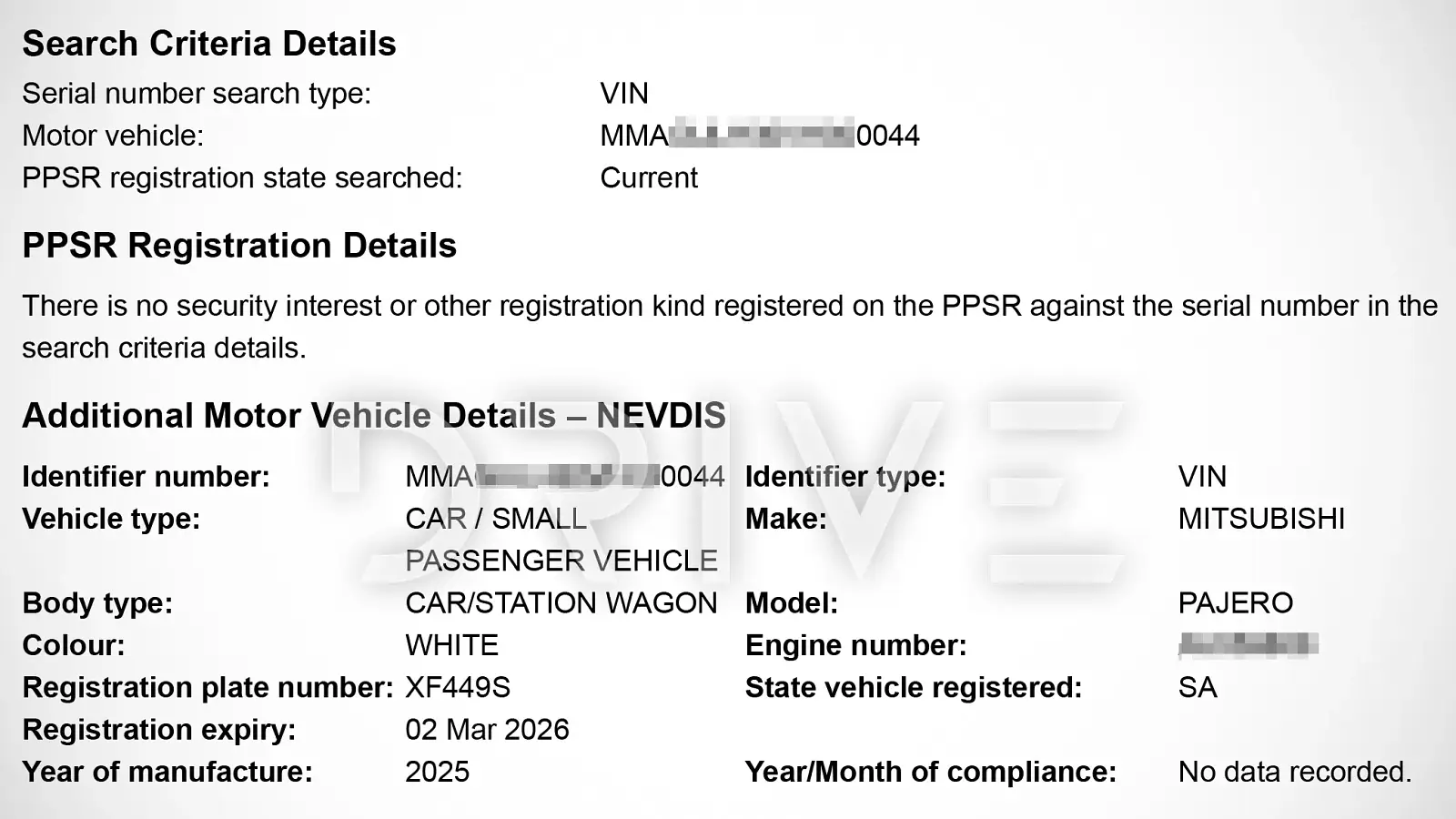 ข้อมูลดังกล่าวถูกเปิดเผยหลังจาก Drive ตรวจสอบหมายเลขตัวถังรถ (VIN) ของ Mitsubishi Pajero ที่จดทะเบียนในรัฐเซาท์ออสเตรเลีย ผ่านฐานข้อมูล Personal Property Securities Register (PPSR) ซึ่งสามารถระบุแหล่งผลิตของตัวรถได้อย่างชัดเจน