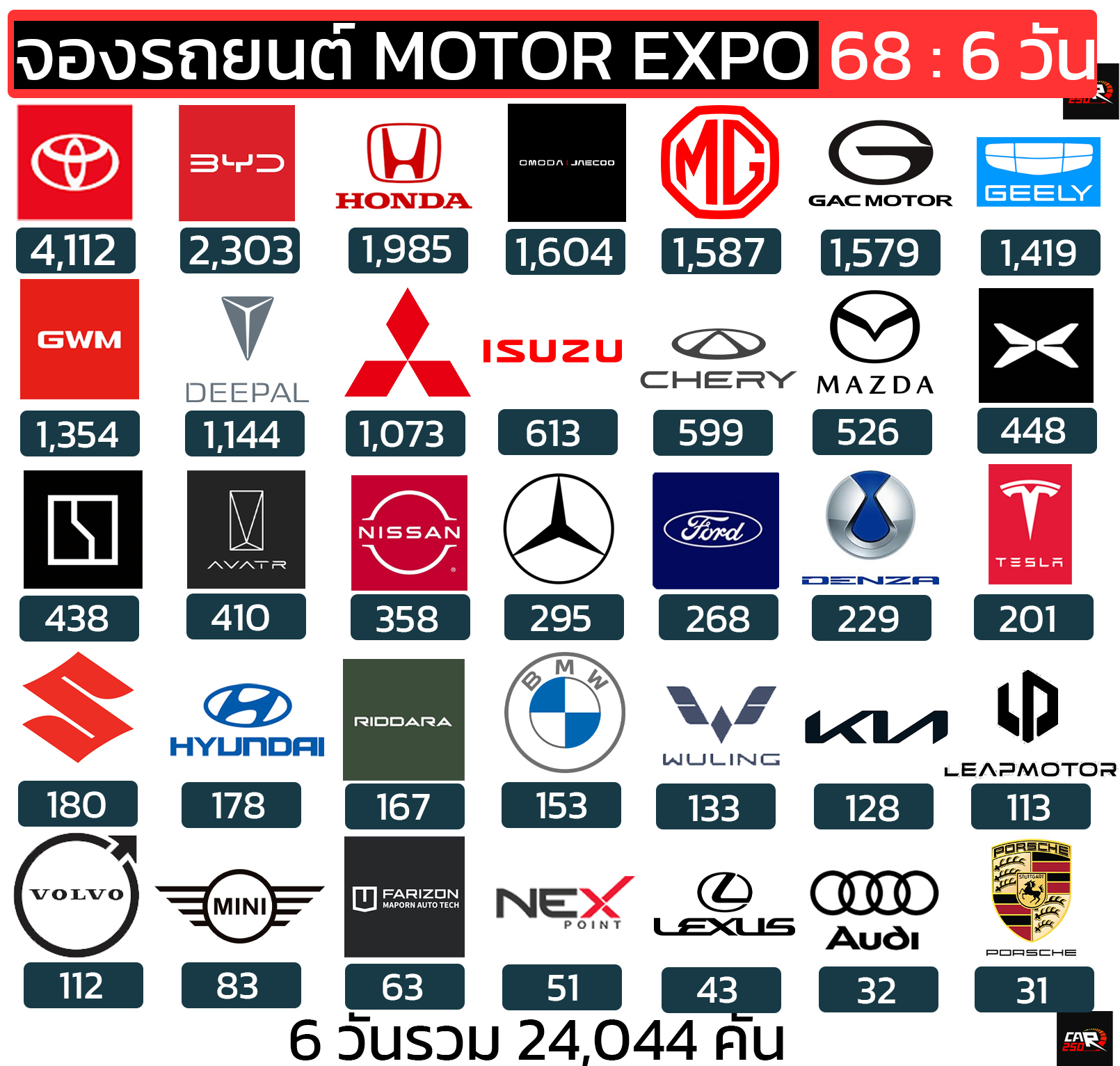 ภาพรวมยอดจอง 6 วันแรก: 24,044 คัน
