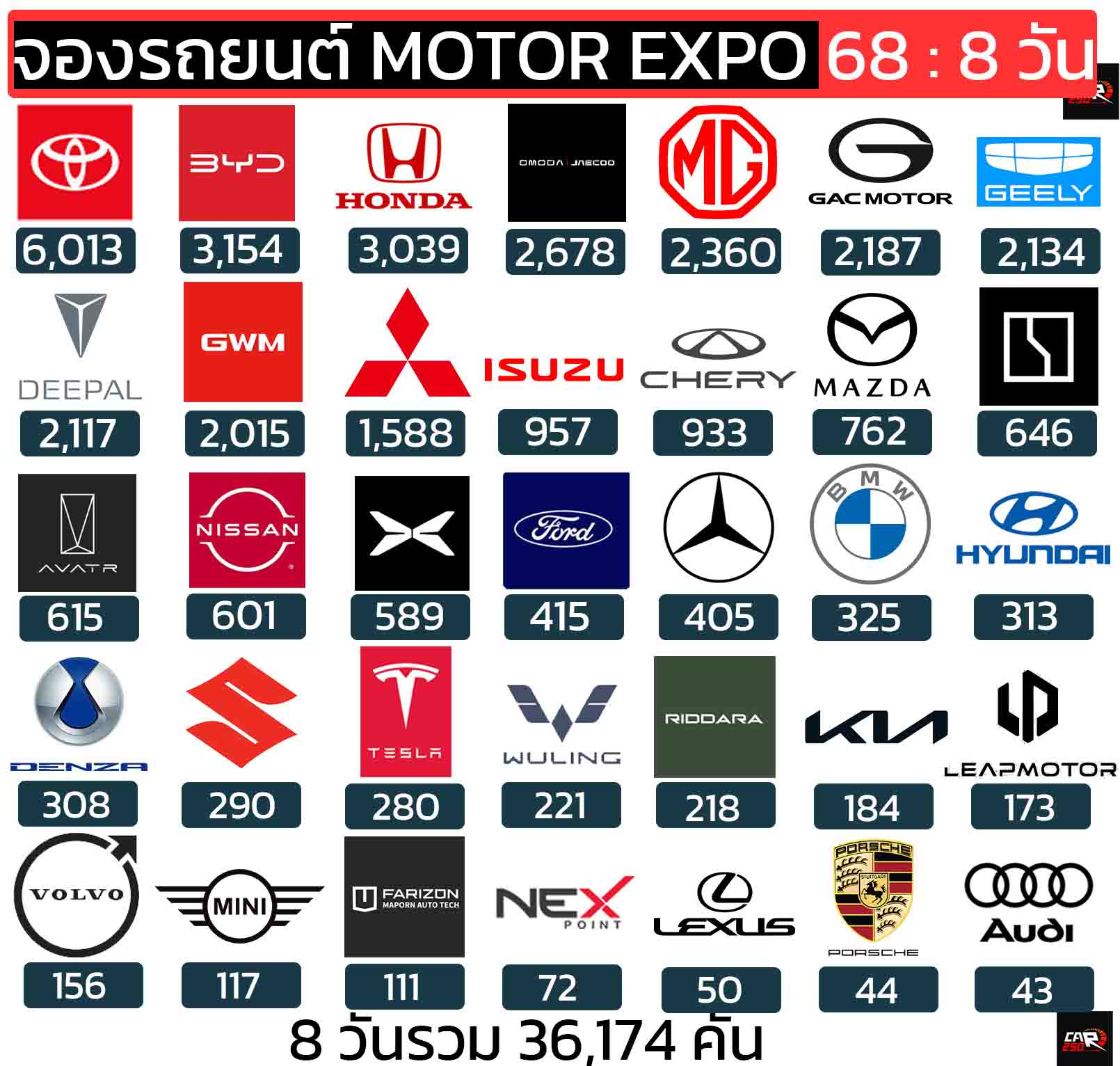 MOTOR EXPO 2025 ยอดจองสะสม 28 พ.ย. – 5 ธ.ค. รวมทั้งหมด: 36,174 คัน
