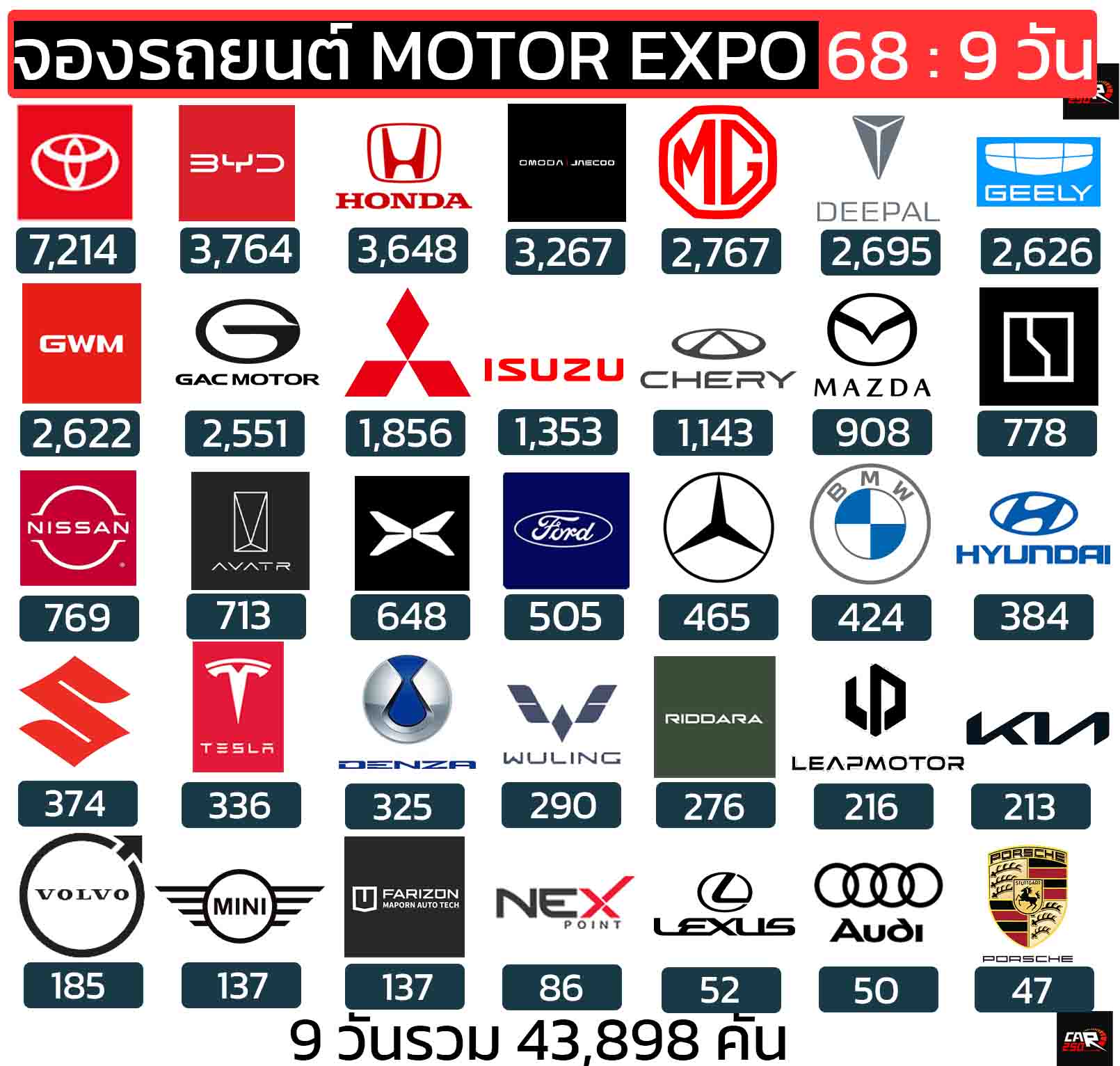 ยอดจองรถยนต์ MOTOR EXPO 2025/2568 วันที่ 28 พ.ย. – 6 ธ.ค. รวมทั้งหมด: 43,898 คัน 9 วัน