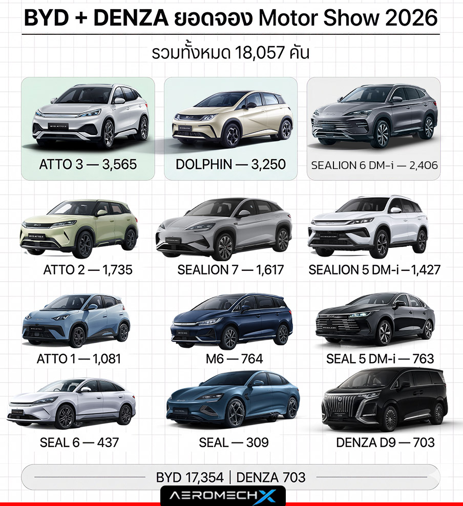 ตารางสรุปยอดจอง Motor Show 2026วม 132,951 คันระหว่าง 23 มีนาคม – 5 เมษายน 2569