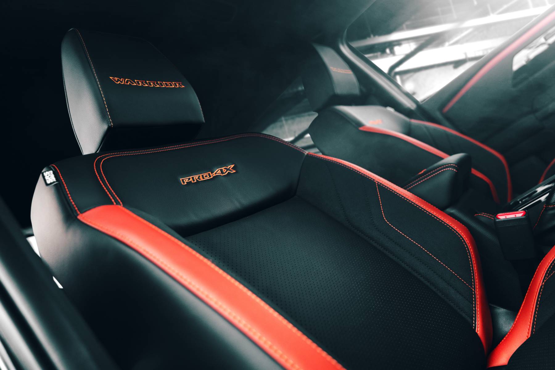 - โลโก้ “WARRIOR” ท้ายรถสีดำ ขอบ Lava Red