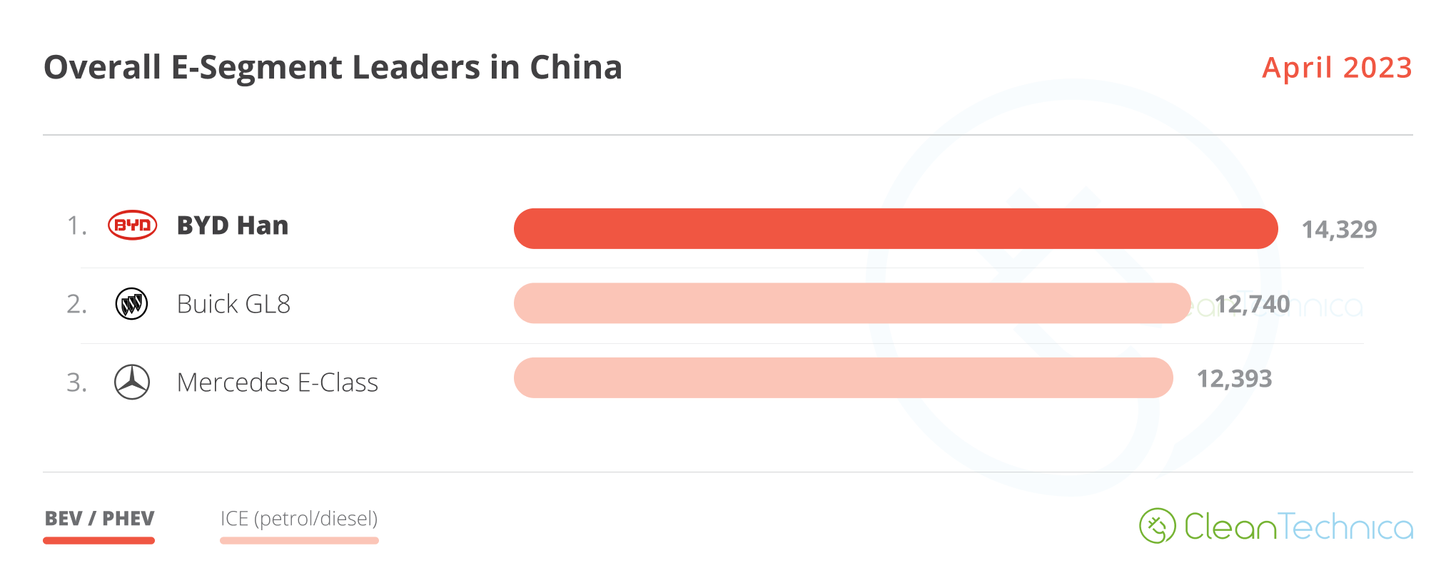 นับตั้งแต่มกราคม – เมษายน 2023 รถยนต์พลังงานใหม่ได้รับการจดทะเบียนในจีนมากกว่า 1.9 ล้านคันจดทะเบียนในจีน (เพิ่มขึ้นประมาณ 37 เปอร์เซ็นต์เมื่อเทียบเป็นรายปี) ซึ่งคิดเป็นประมาณ 33 เปอร์เซ็นต์ของปริมาณทั้งหมด