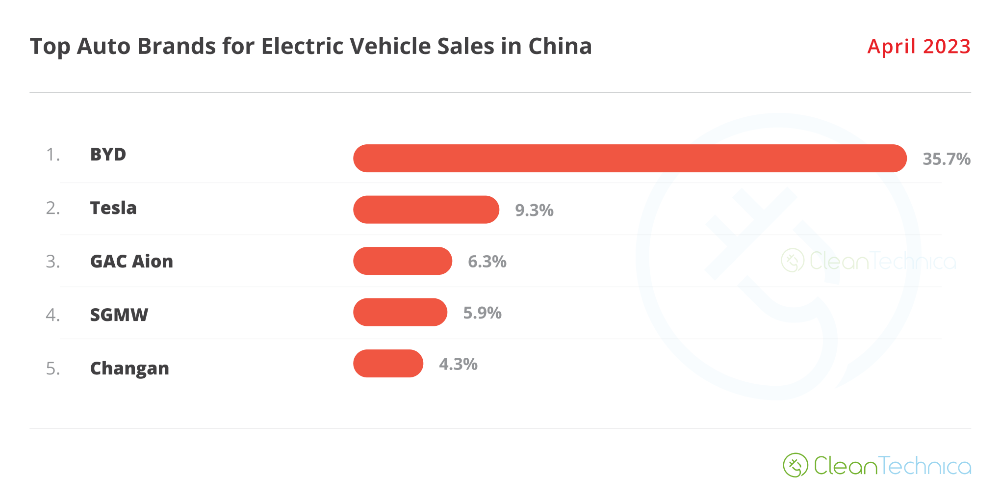 ยอดขายรถยนต์พลังงานใหม่ในจีน เมษายน 2023