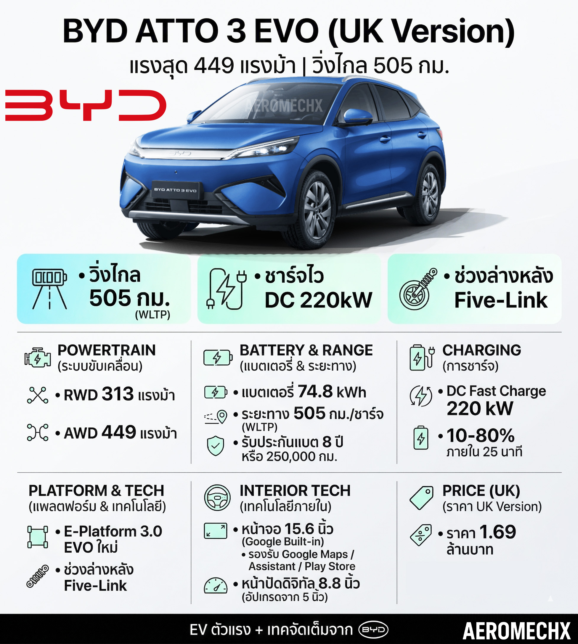 ตารางสรุปข้อมูล BYD ATTO 3 EVO