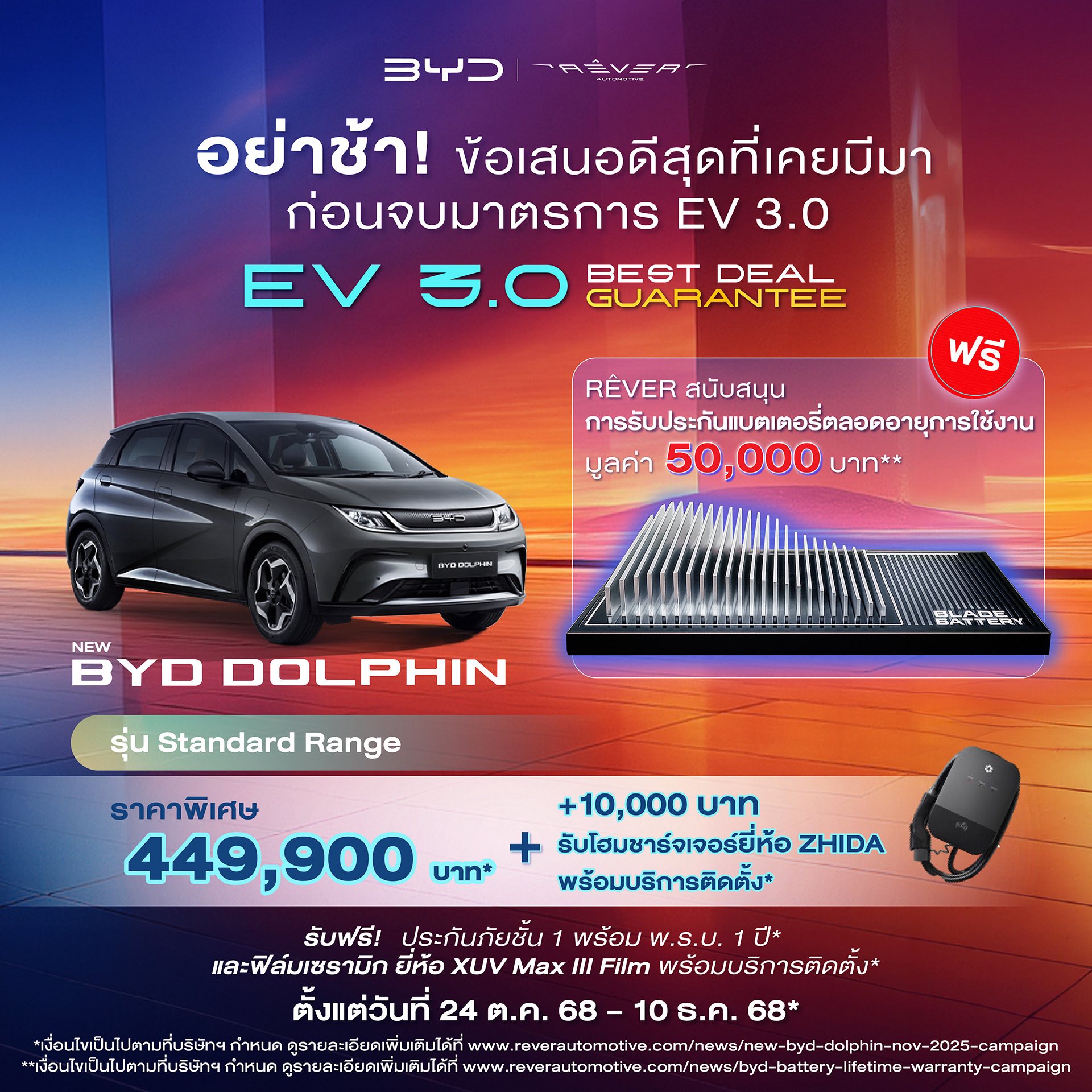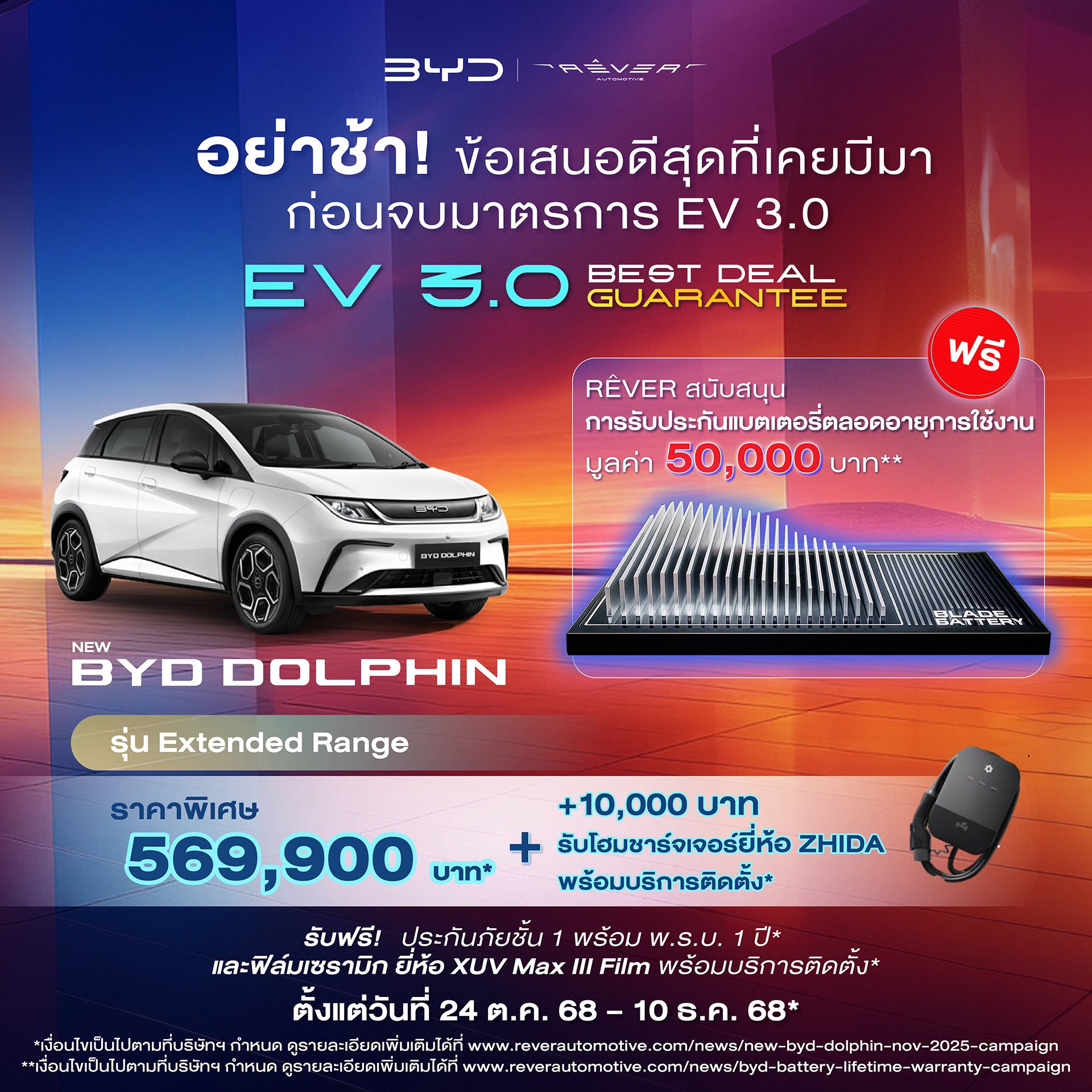 RÊVER สนับสนุนการรับประกันแบตเตอรี่ตลอดอายุการใช้งาน ฟรี! มูลค่า 50,000 บาท**