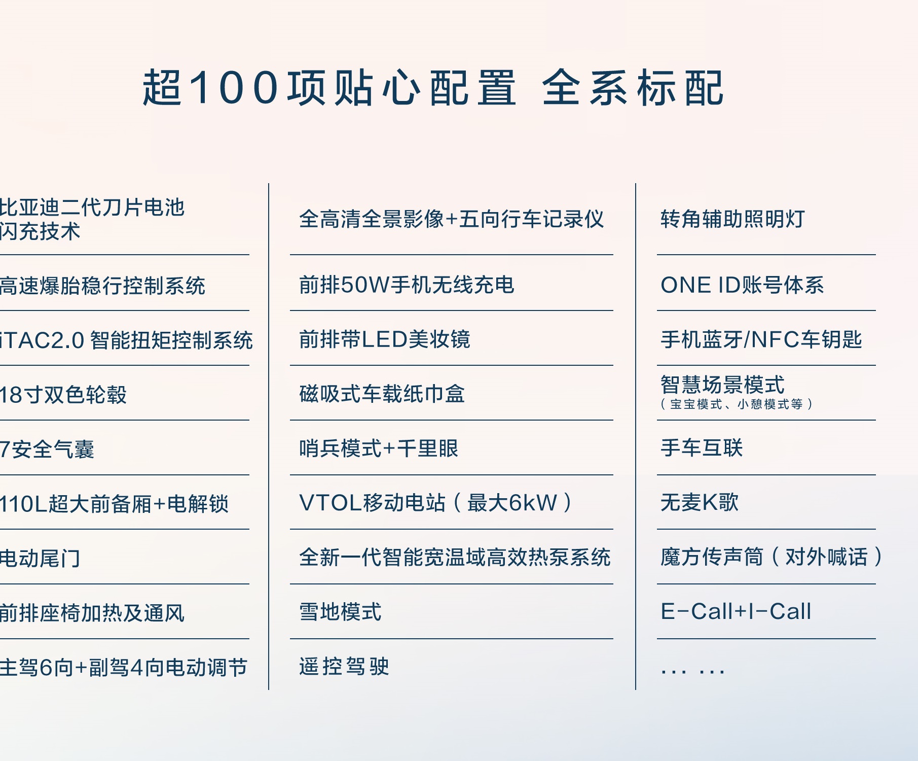- Platform & Battery: ใช้เทคโนโลยี CTB (Cell-to-Body) รวมแบตเตอรี่เข้ากับโครงสร้างตัวถัง และแบตเตอรี่ Blade Battery เจเนอเรชันที่ 2