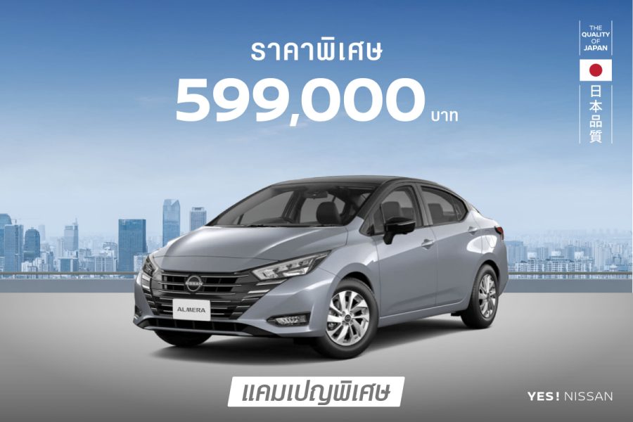 *เงื่อนไขเป็นไปตามที่บริษัท นิสสัน มอเตอร์ (ประเทศไทย) จำกัด และผู้จำหน่ายกำหนด กรุณาติดต่อโชว์รูม Nissan ใกล้บ้านเพื่อยืนยันรายละเอียดโปรโมชั่น และช่วงระยะเวลาแคมเปญล่าสุดอีกครั้ง