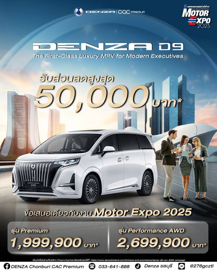 พร้อมหรือยังที่จะสัมผัสอีกระดับของความหรูหราและความสบายแบบรถธงระดับพรีเมียม พบกับ DENZA D9 PHANTOM EDITION เปิดตัวอย่างเป็นทางการ ในวันที่ 28 พฤศจิกายนนี้ ที่งาน Motor Expo 2025 และโชว์รูม DENZA ใกล้บ้านคุณ