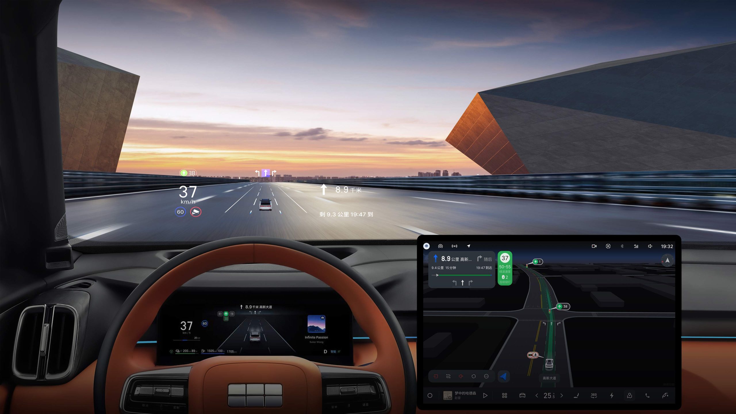 - หน้าจอคู่ระดับเทพ: หน้าจอกลางความละเอียด 2.5K ขนาด 15.4 นิ้ว ทำงานคู่กับ 25.6-inch HUD (หน้าจอสะท้อนกระจกหน้า) ที่มีความสว่างสูงถึง 12,000 nit เห็นชัดแม้กลางแดดจ้า