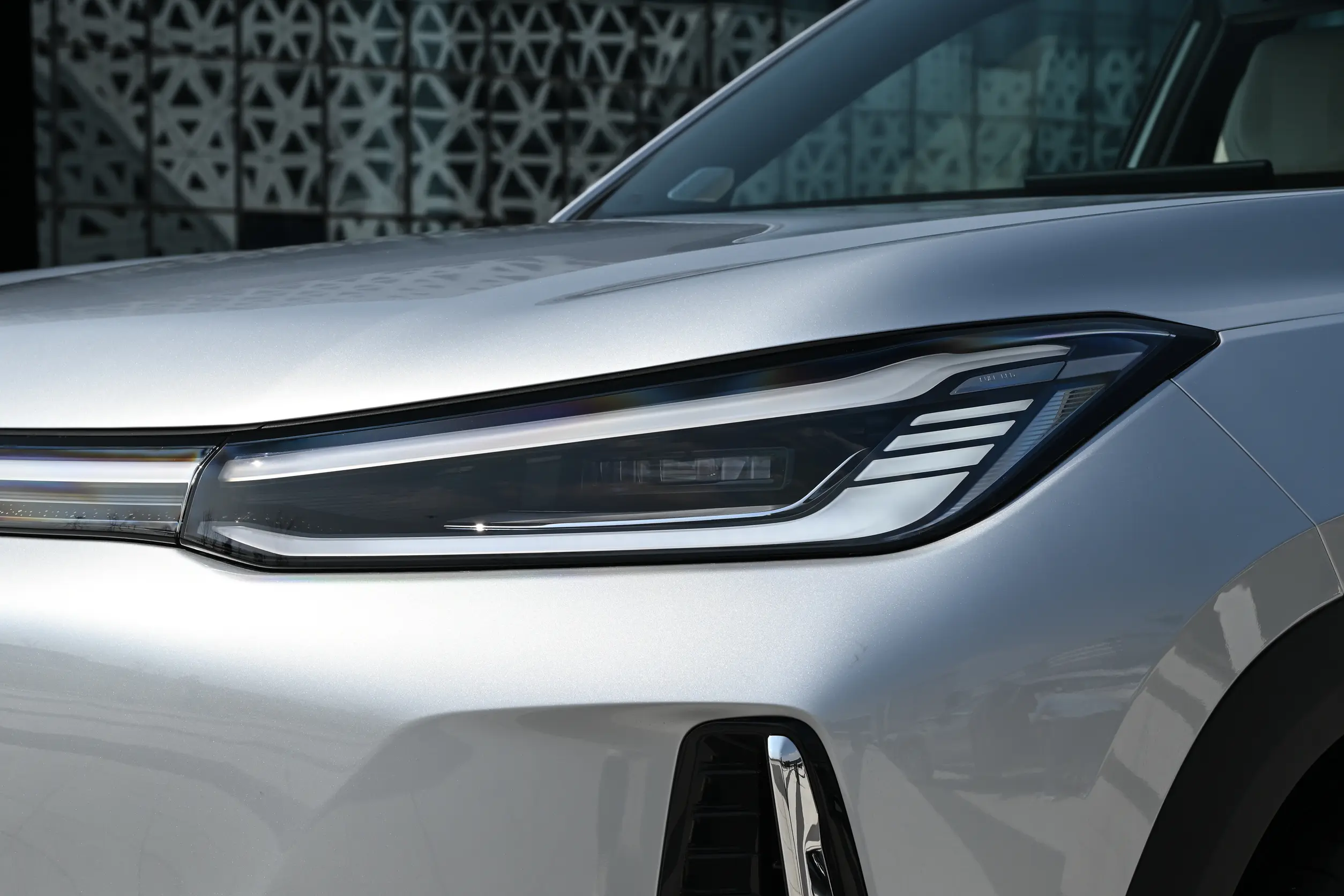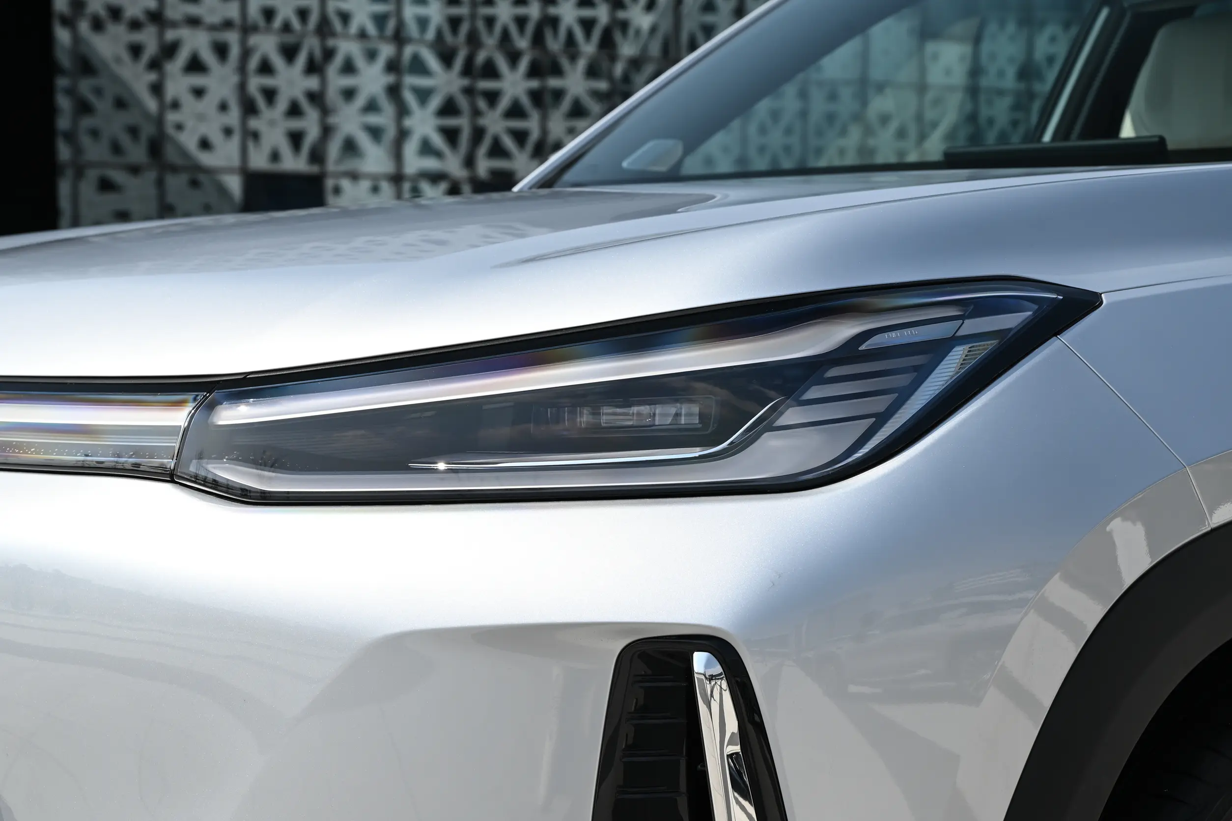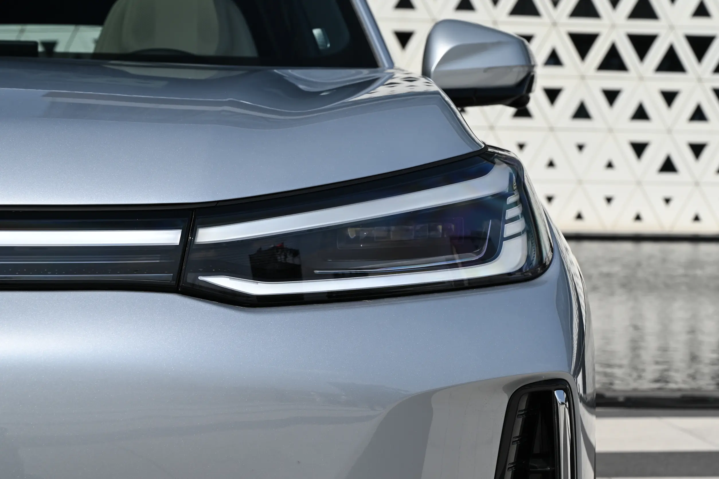 - ชุดไฟหน้าบูรณาการ: โดดเด่นด้วยแถบไฟ LED แบบ贯穿式 (Through-type) ที่พาดผ่านด้านหน้า เชื่อมต่อกับโคมไฟหน้าทรงมัลติพอลีกอน (Polygonal Headlights) ทั้งสองฝั่งเป็นชิ้นเดียวกันอย่างลงตัว