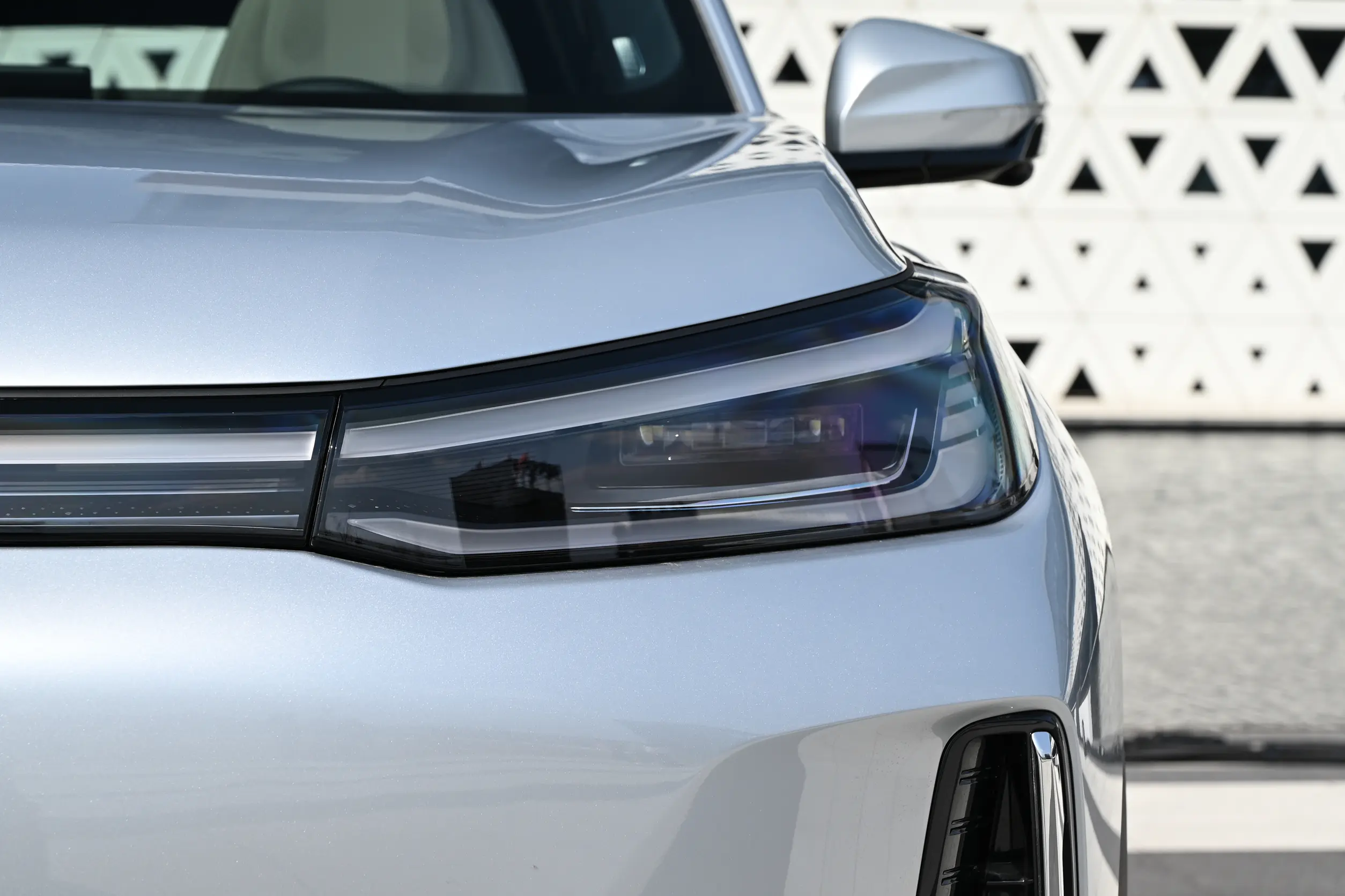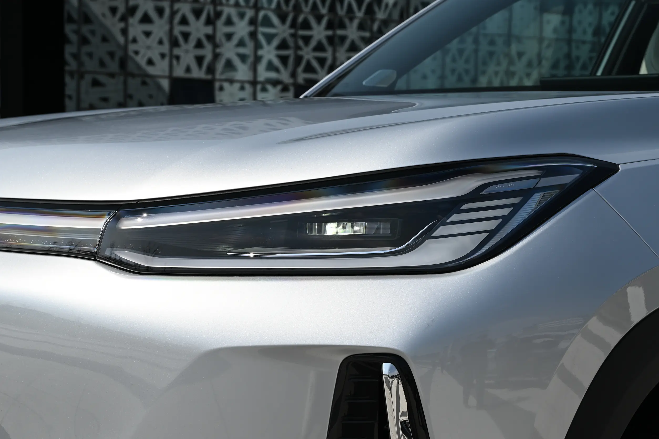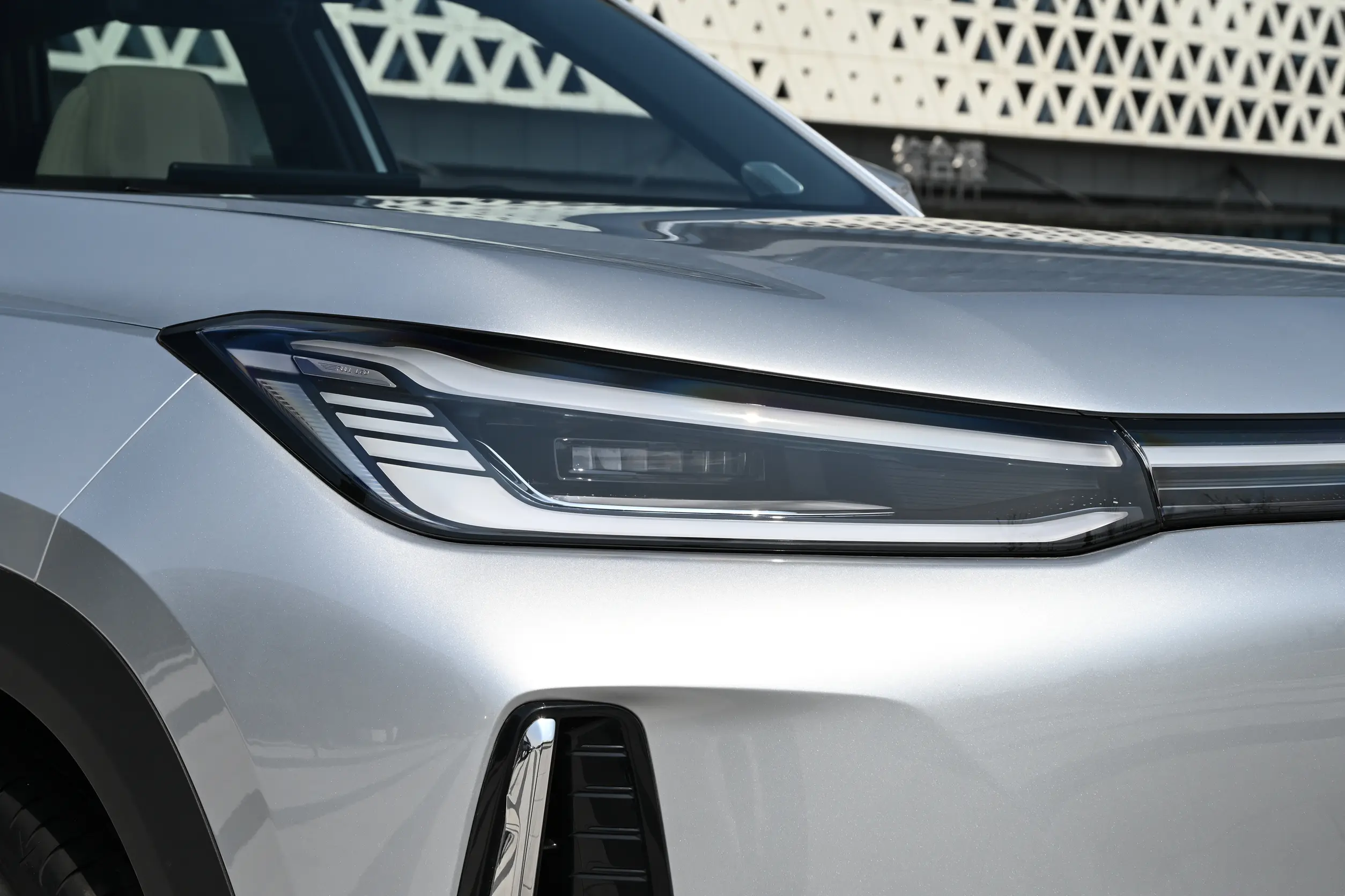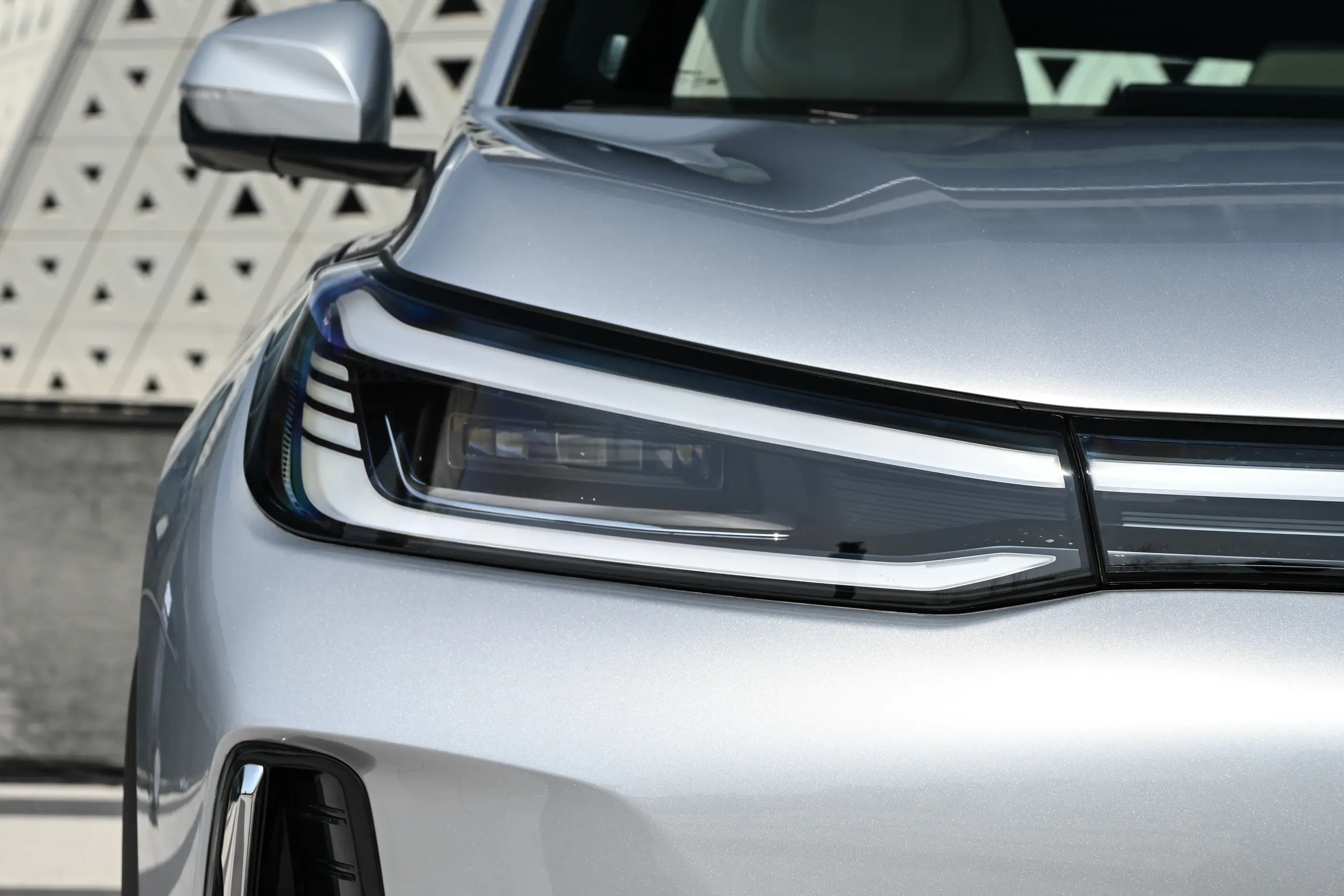 - ชุดไฟหน้าบูรณาการ: โดดเด่นด้วยแถบไฟ LED แบบ贯穿式 (Through-type) ที่พาดผ่านด้านหน้า เชื่อมต่อกับโคมไฟหน้าทรงมัลติพอลีกอน (Polygonal Headlights) ทั้งสองฝั่งเป็นชิ้นเดียวกันอย่างลงตัว