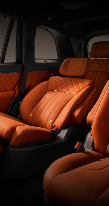 - Second Row Luxury: เบาะแบบ Zero-gravity ปรับเอนได้แบบ Lay-flat มาพร้อมโต๊ะพับ, ระบบนวด, และจอความบันเทิงบนเพดานที่ควบคุมด้วย AI