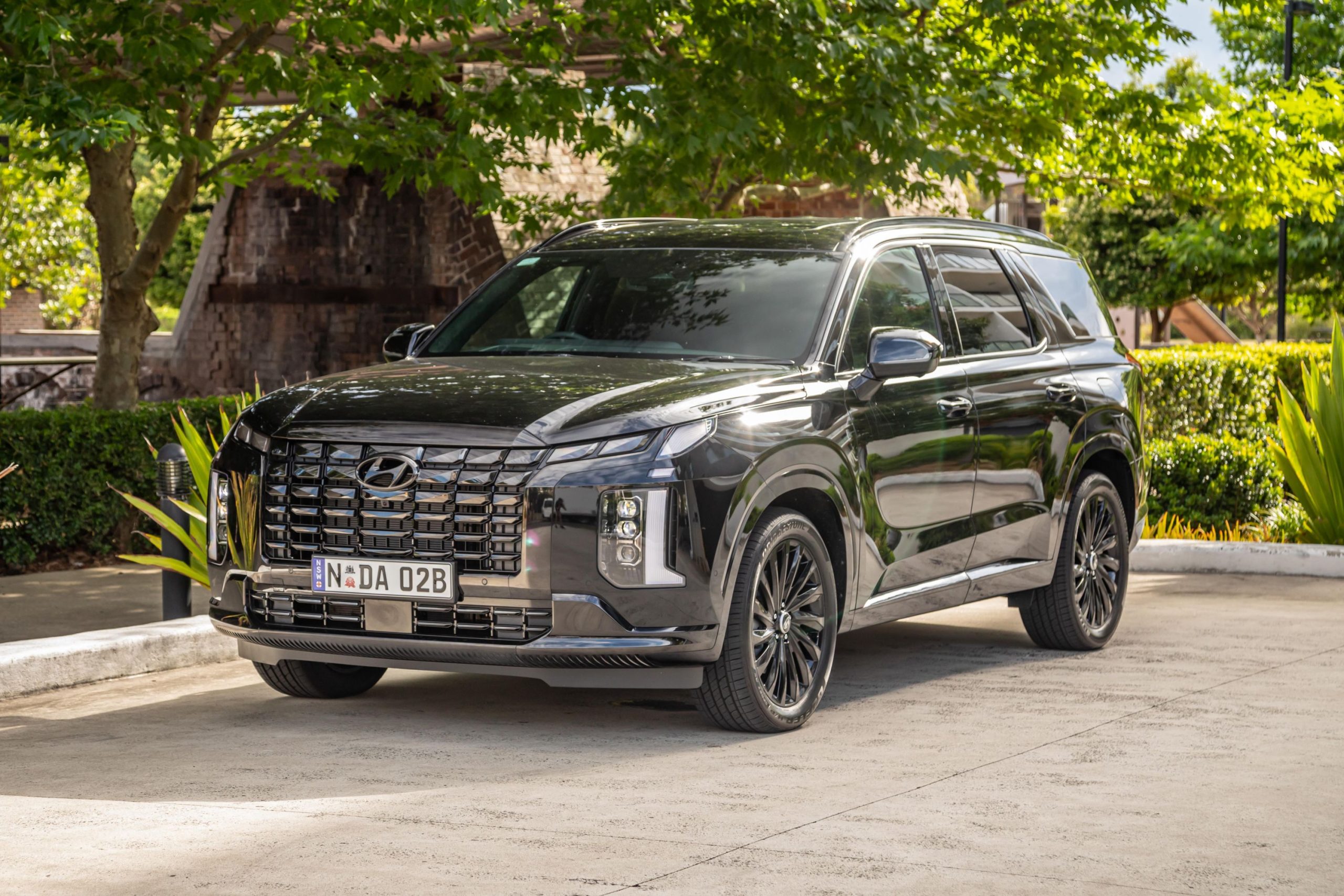 Hyundai Palisade ใหม่ มาพร้อมกระจังหน้าสี่เหลี่ยมคางหมูที่โค้งมนนุ่มนวลมากกว่า ไฟหน้าแบบ LED แนวตั้งโด่ดเด่นพร้อมไฟส่องสว่างกลางวันแนวตั้งรูปตัว L กระจกมองข้างแบบปรับลดแสงอัตโนมัติ กันชนหลังออกแบบใหม่ ไฟท้ายแบบแยกส่วน ท่อไอเสียทรงเหลี่ยม ล้ออัลลอยหลายก้านขนาด 20 นิ้ว