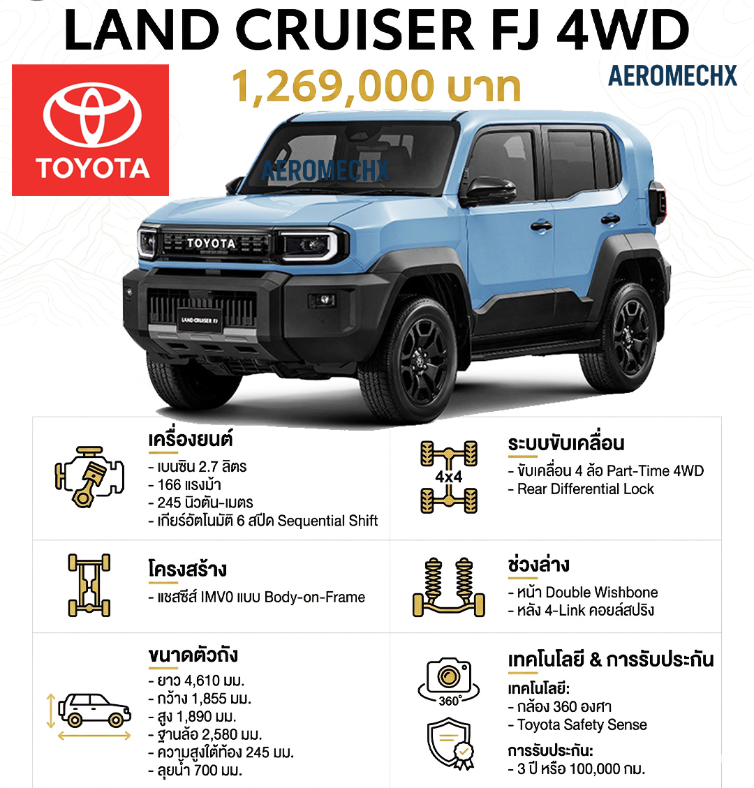 | Land Cruiser FJ 2.7 6AT 4WD | 1,269,000 บาท | 1,289,000 บาท |