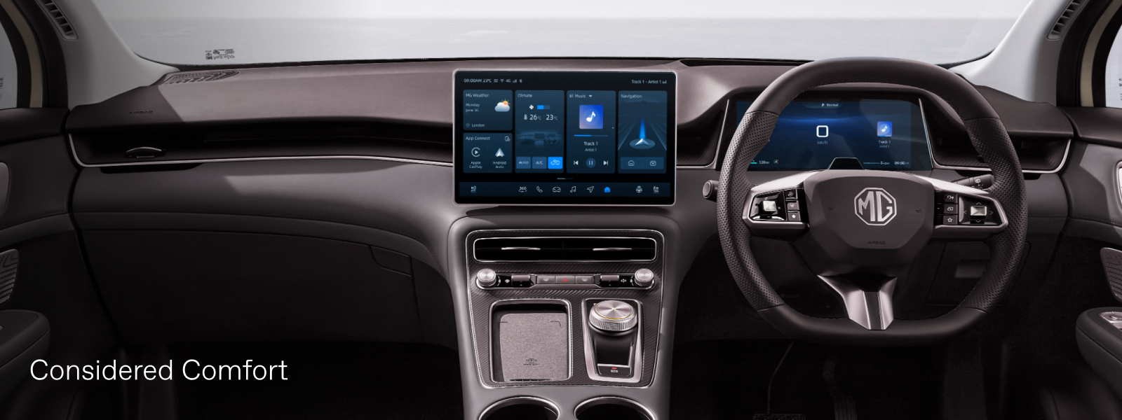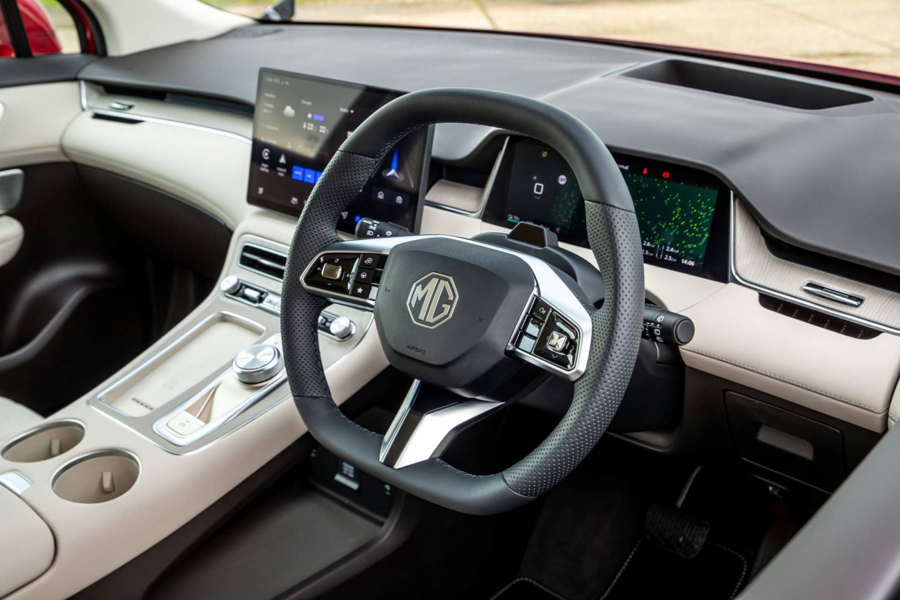 MG ได้รับฟีดแบกจากลูกค้าเดิมว่าระบบจอสัมผัสควรมีปุ่มจริงช่วยควบคุมฟังก์ชันพื้นฐาน จึงจัดปุ่มฟังก์ชันไว้เป็นแถบใต้มอนิเตอร์กลาง ทำให้ใช้ง่ายขึ้นอย่างเห็นได้ชัด