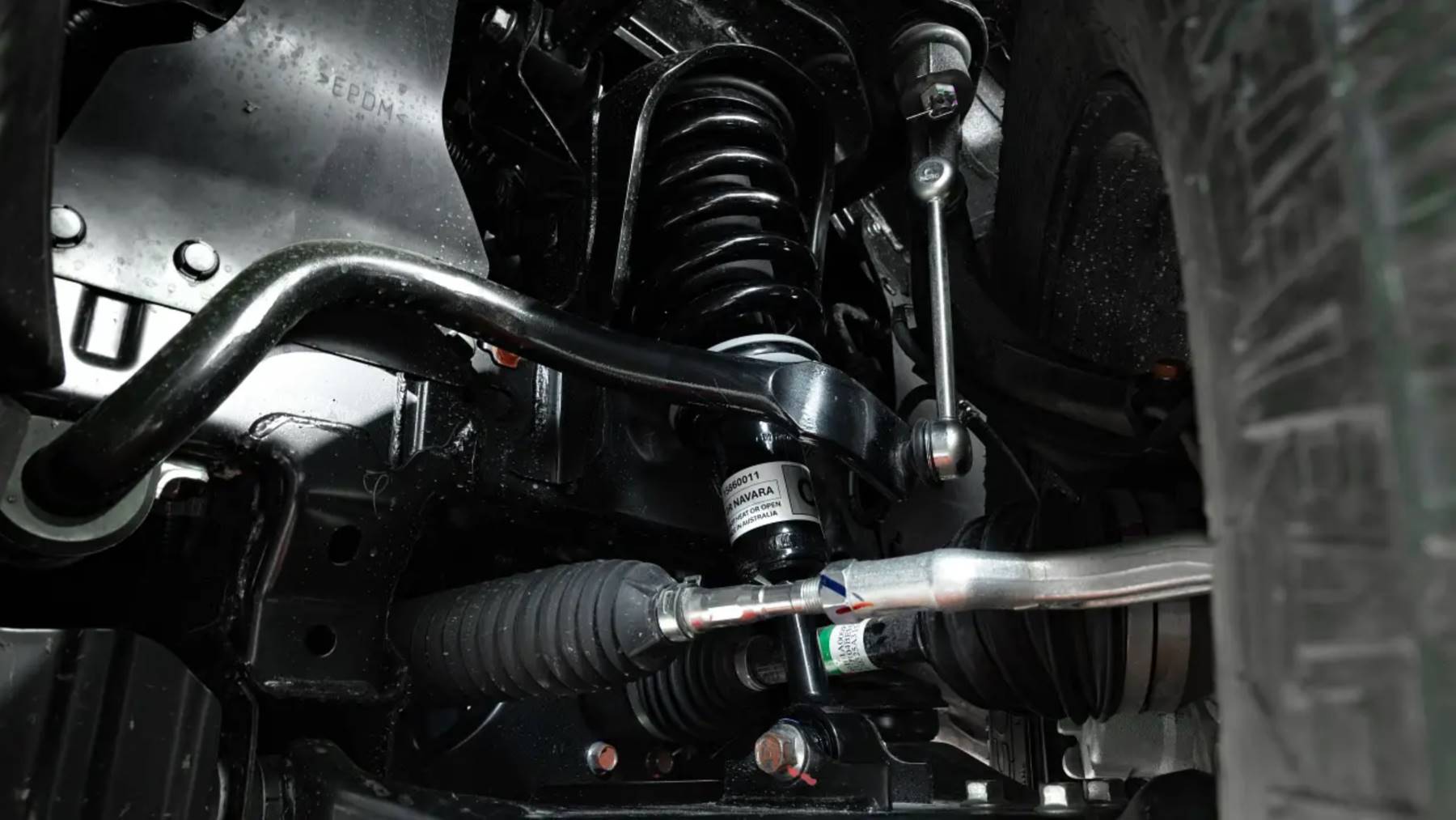 สิ่งที่ Navara แตกต่างคือ ช็อกอัพใหม่จาก Premcar ที่พัฒนาเฉพาะ มี 3 แบบ (ไม่รวมรุ่น Warrior) โดยทดลองถึง 870 โค้ดช็อกอัพ และ แผ่นชิม 550 แบบ เพื่อให้ได้ฟีลลิ่งที่ลงตัวที่สุด