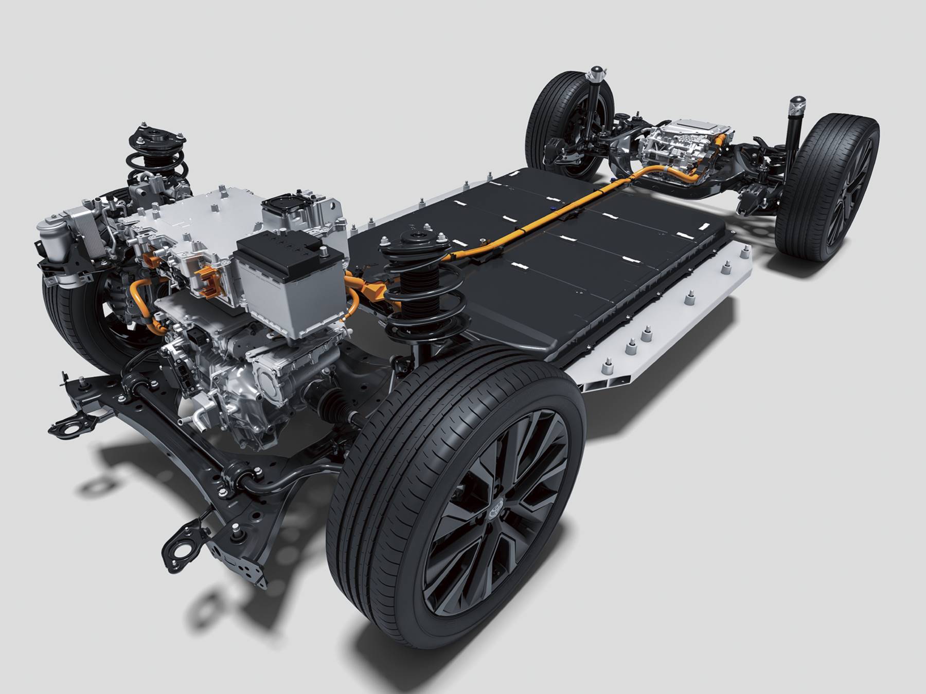 Toyota bZ4X Touring พัฒนาบนแพลตฟอร์ม e-TNGA พร้อมระบบ eAxle รุ่นใหม่ โดยมีทั้งรุ่นขับเคลื่อนล้อหน้า (FWD) และขับเคลื่อนสี่ล้อไฟฟ้า (4WD) ให้เลือก