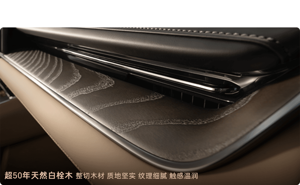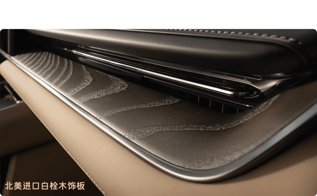 - Real Wood & Nappa Leather: มีการใช้ ไม้แอชธรรมชาติ (Natural White Ash Wood) ตกแต่งบริเวณคอนโซลหน้าและแผงประตู ผสมผสานกับเบาะหนัง Nappa ที่ให้ผิวสัมผัสนุ่มนวล