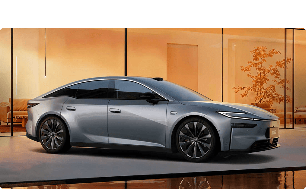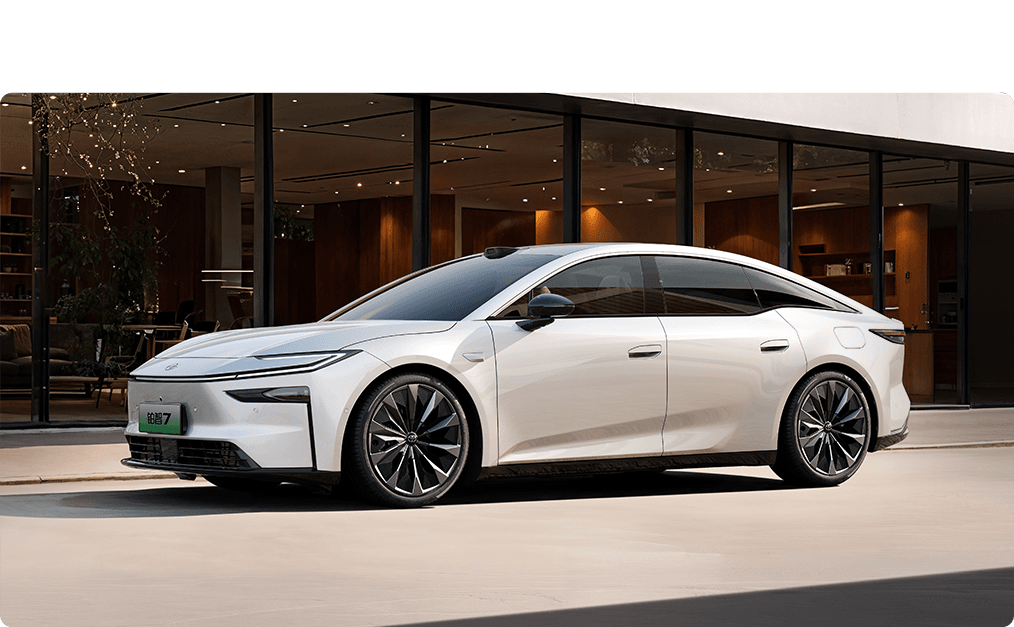 - ต่างจากรุ่นก่อนหน้าอย่าง bZ4X ที่ใช้แพลตฟอร์ม e-TNGA ของ Toyota เอง แต่ bZ7 ถูกพัฒนาโดยบริษัทร่วมทุน GAC-Toyota ซึ่งหยิบยืมสถาปัตยกรรมหลักมาจากแบรนด์ GAC Aion (แบรนด์ EV ในเครือ Guangzhou Automobile Group) ทำให้ bZ7 มีพื้นรถที่เรียบสนิทและกว้างขวาง เหมาะสำหรับรถซีดานไฟฟ้าโดยเฉพาะ