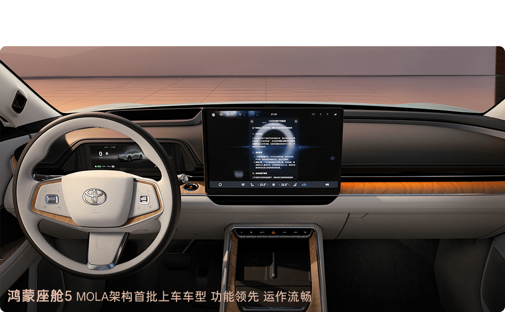 - Huawei HarmonyOS (HarmonySpace): เป็นรถ Toyota รุ่นแรกที่ใช้ระบบปฏิบัติการจาก Huawei เต็มรูปแบบ ทำงานบนหน้าจอกลางขนาด 15.6 นิ้ว ที่ลื่นไหลเหมือนแท็บเล็ต