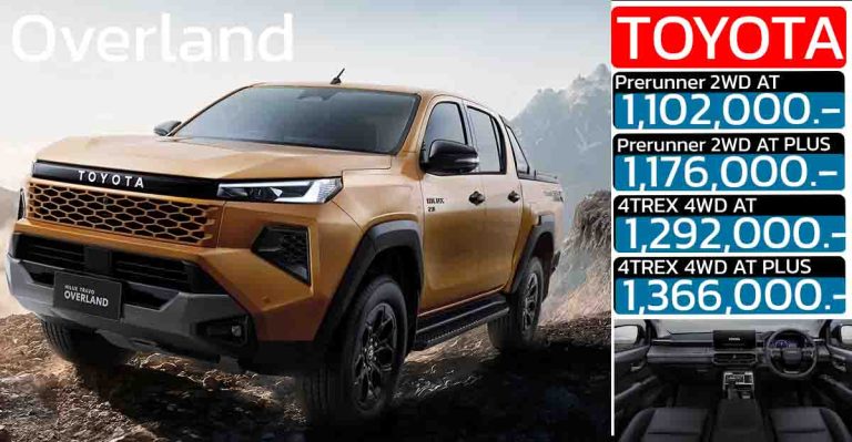 Spread the love … อ่านเพิ่มเติม ราคาจำหน่าย TOYOTA HILUX TRAVO Overland 2026 เครื่องยนต์ 2.8 ลิตร ใหม่ 1,102,000 – 1,366,000 บาท