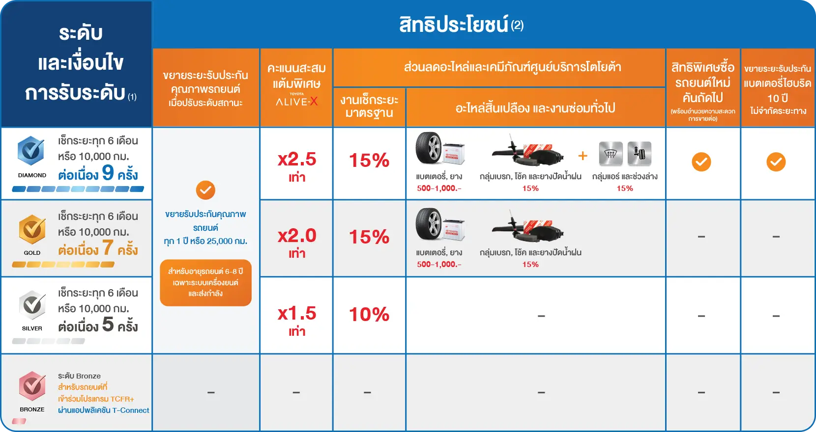 • สิทธิลดพิเศษในการซื้อรถคันใหม่ (สำหรับระดับสูง เช่น Diamond)