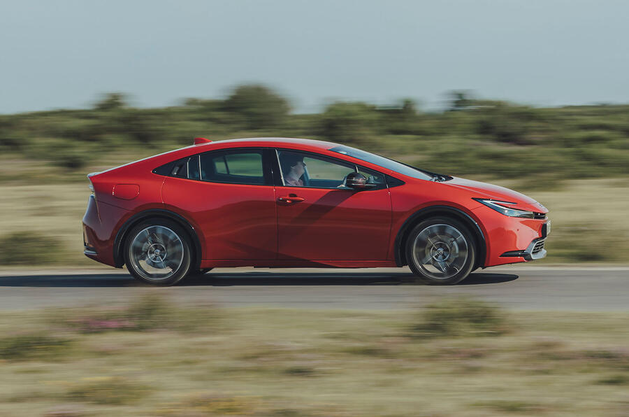 Prius รุ่นล่าสุดที่เหนือกว่าขุมกำลังและอัตราเร่งที่คาดไม่ถึง การทรงตัวและการจัดการยังได้รับการปรับปรุงด้วยแพลตฟอร์ม GA-C เจนเนอเรชั่นที่สองของ Toyota New Global Architecture (TNGA) ซึ่งนำน้ำหนักที่ลดลงและความแข็งแกร่งที่สูงขึ้นเพื่อการนั่งที่มั่นคงยิ่งขึ้น จุดศูนย์ถ่วงที่ต่ำลงทำได้โดยการวางแบตเตอรี่ EV ไว้ใต้เบาะหลังและย้ายถังเชื้อเพลิงให้ต่ำลงและไปข้างหน้ามากขึ้นเมื่อเทียบกับรุ่นก่อนหน้า ช่วยเพิ่มพลวัตและความคล่องตัวในการขับขี่