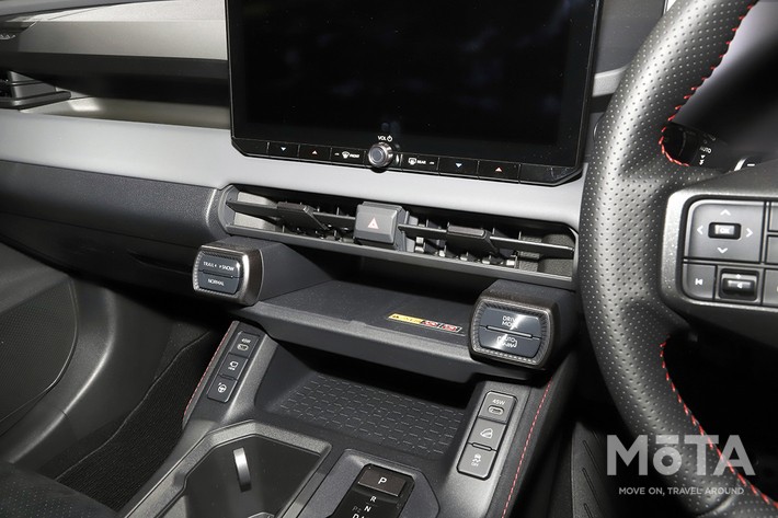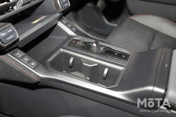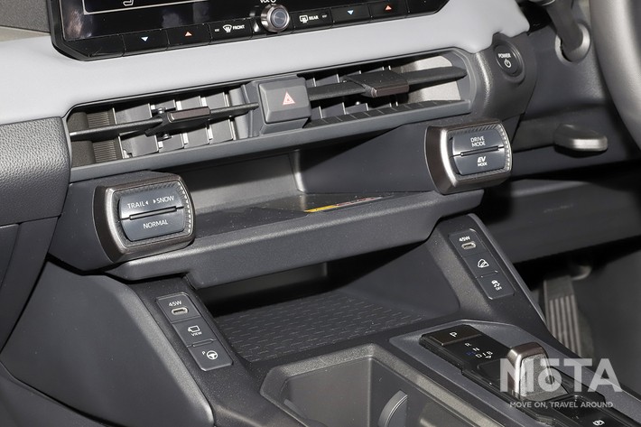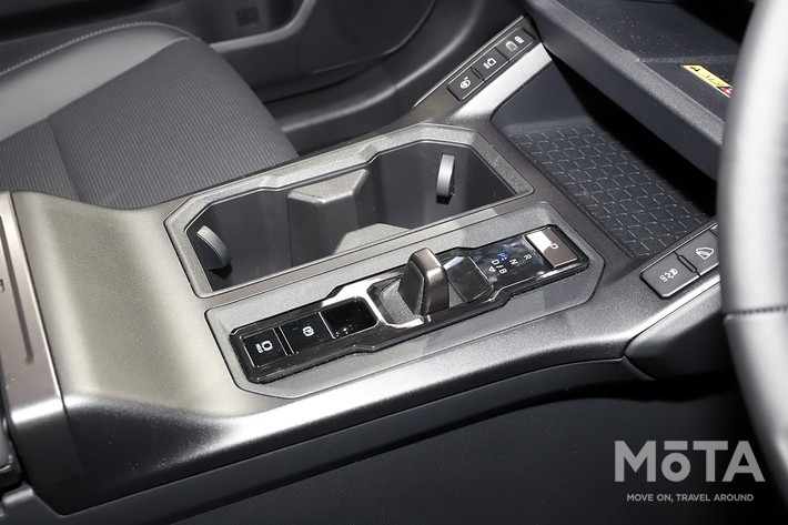 คอนโซลกลางดีไซน์ใหม่รวมฟังก์ชันสำคัญ (จอสัมผัส Drive Mode ที่เก็บของ) เป็นแนวตั้ง ใช้พื้นที่คุ้ม และมีคันเกียร์ Shift-by-Wire แบบสวิตช์ Toggle บางเกรด