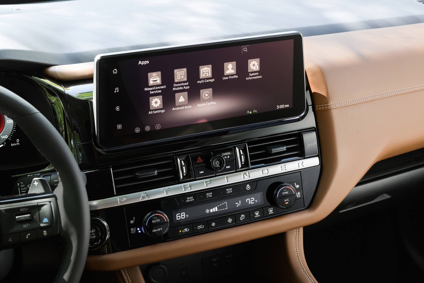ภายในห้องโดยสาร ออกแบบแผงคอนโซลใหม่ มาพร้อมหน้าจอสัมผัสขนาดใหญ่ขึ้น และประทับตัวอักษร “PATHFINDER” ใต้ชุดจออินโฟเทนเมนต์