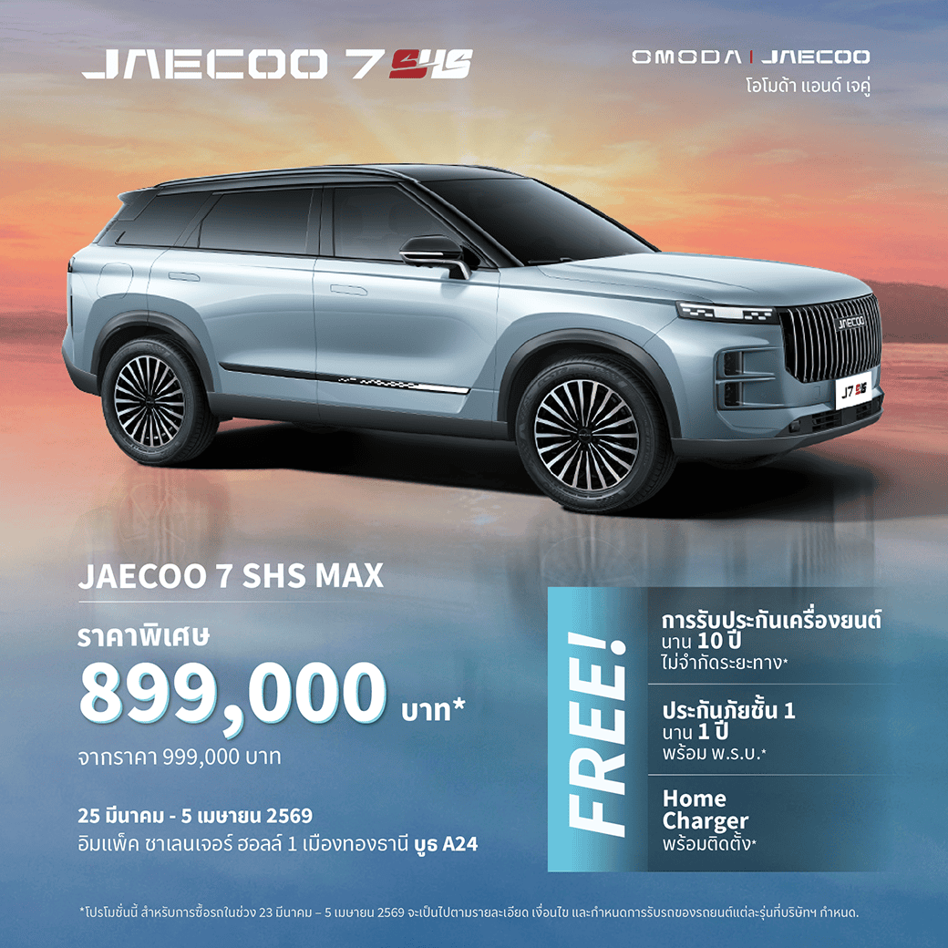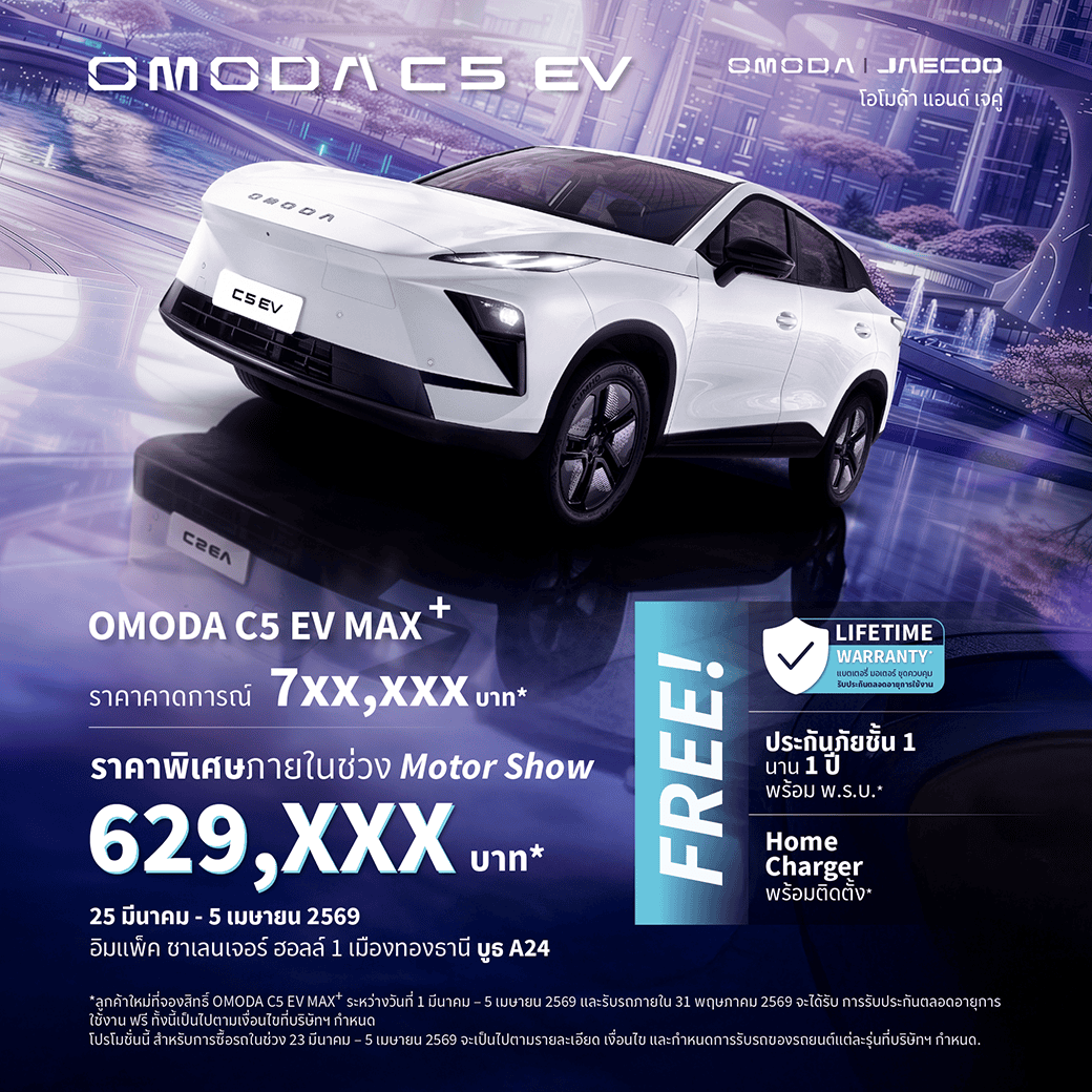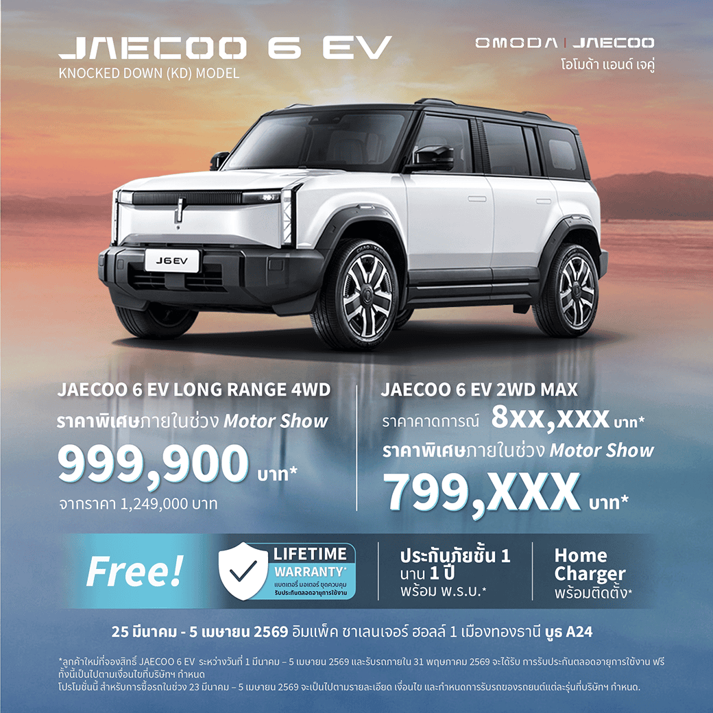 กลายเป็นบูธที่ฮอตที่สุดในงาน Motor Show 2026 ไปแล้ว เมื่อแบรนด์รถยนต์ไฟฟ้าน้องใหม่แรงเร็วอย่าง OMODA & JAECOO ประกาศสงครามราคาและสิทธิประโยชน์ที่หาตัวจับยาก ด้วยการเปิดตัวราคาพิเศษสำหรับรถทุกรุ่นในเครือ พร้อมชูจุดเด่น “Lifetime Warranty” หรือการรับประกันตลอดอายุการใช้งานที่สร้างความมั่นใจให้กับผู้ใช้รถคนไทยแบบสูงสุดครับ