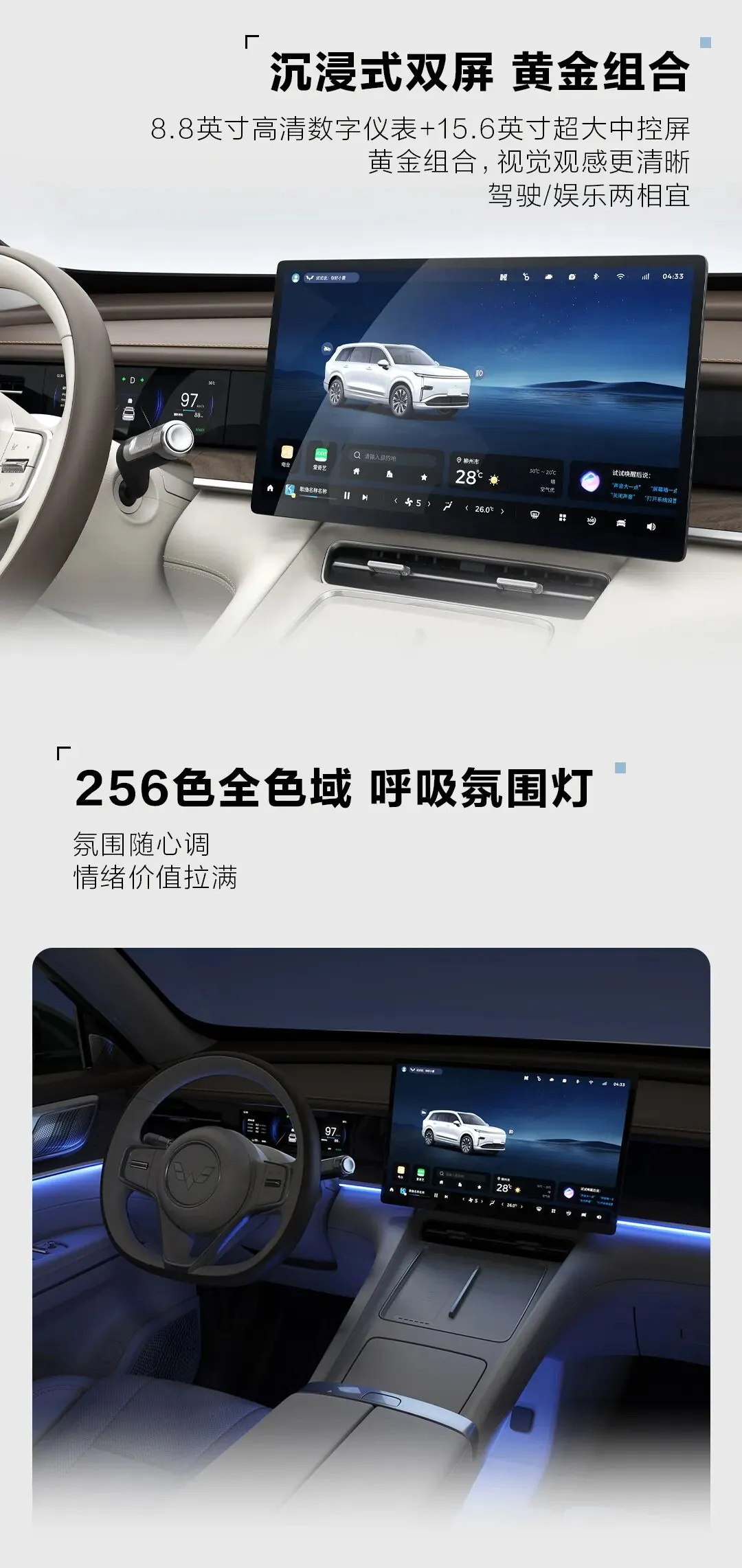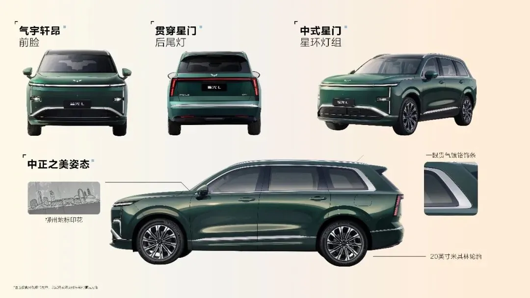 - ระบบไฟ: ไฟหน้าดีไซน์ “ประตูรัศมีดาว” (Star Gate) สไตล์จีน และไฟท้ายแบบ LED เส้นทแยงยาวเชื่อมต่อกันซ้าย-ขวา (贯穿式尾灯)