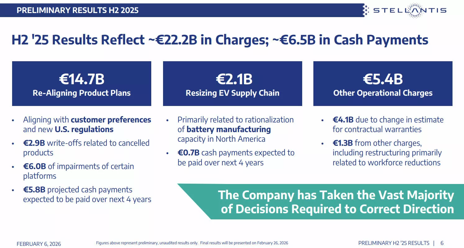 Stellantis เดินเกมครั้งสำคัญหลังการเปลี่ยนแปลงผู้บริหารระดับสูง โดยประกาศ “รีเซ็ตธุรกิจ” พร้อมตั้งค่าใช้จ่ายพิเศษรวม 26.2 พันล้านดอลลาร์สหรัฐ หรือ 826,000 ล้านบาท สะท้อนการปรับทิศทางจากการเร่งรุก EV ไปสู่แนวทางใหม่ที่บริษัทเรียกว่า “freedom of choice” หรือการให้ลูกค้าเลือกขุมพลังได้ตามความต้องการจริง ทั้ง ICE / Hybrid / EV