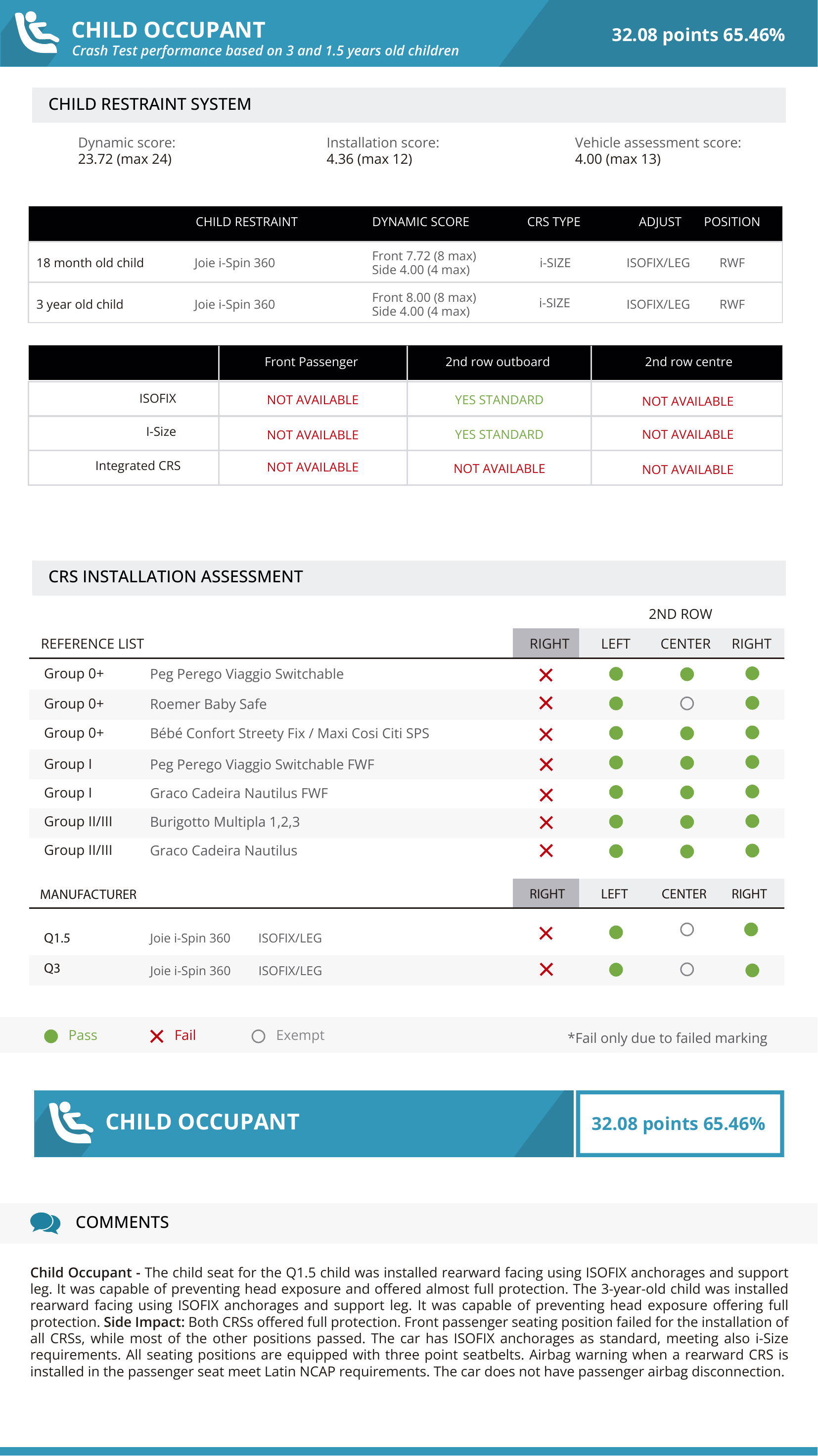 - ผู้โดยสารเด็ก (Child Occupant): 65%