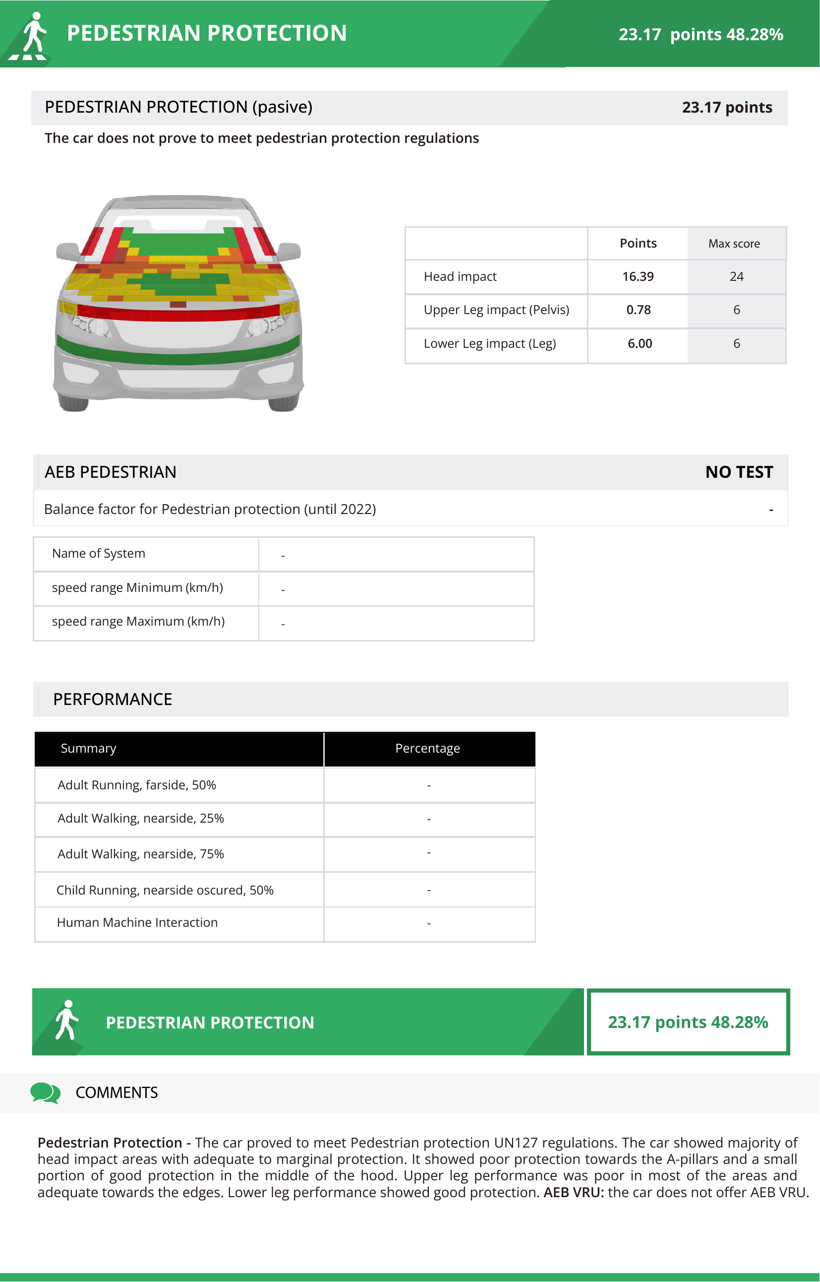 - การปกป้องคนเดินถนน (Pedestrian Protection): 48%