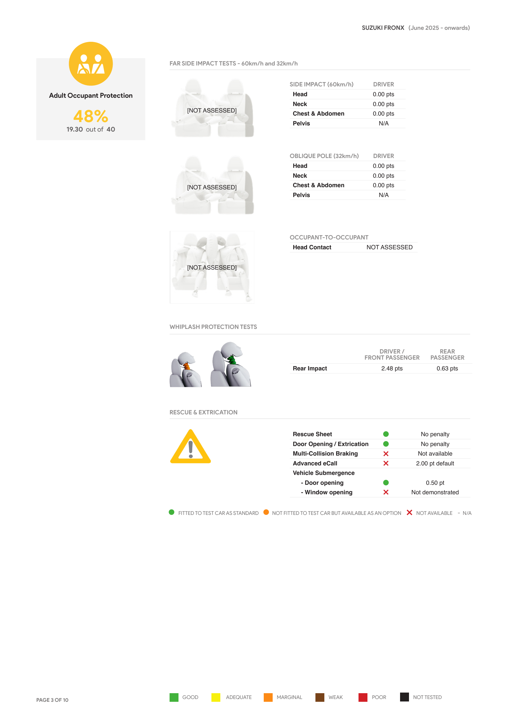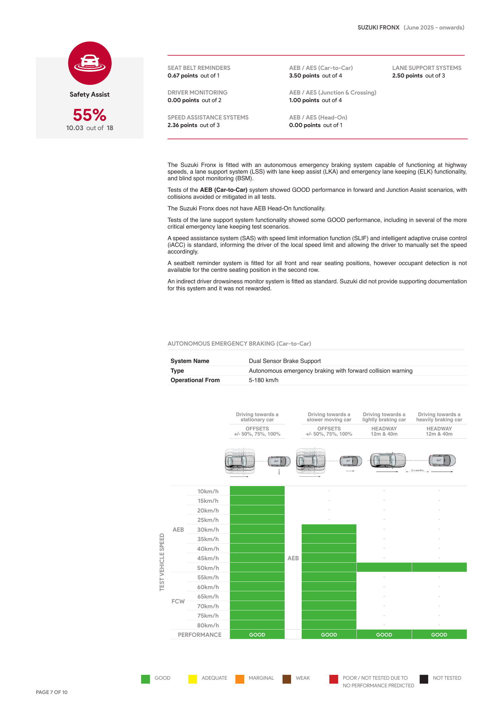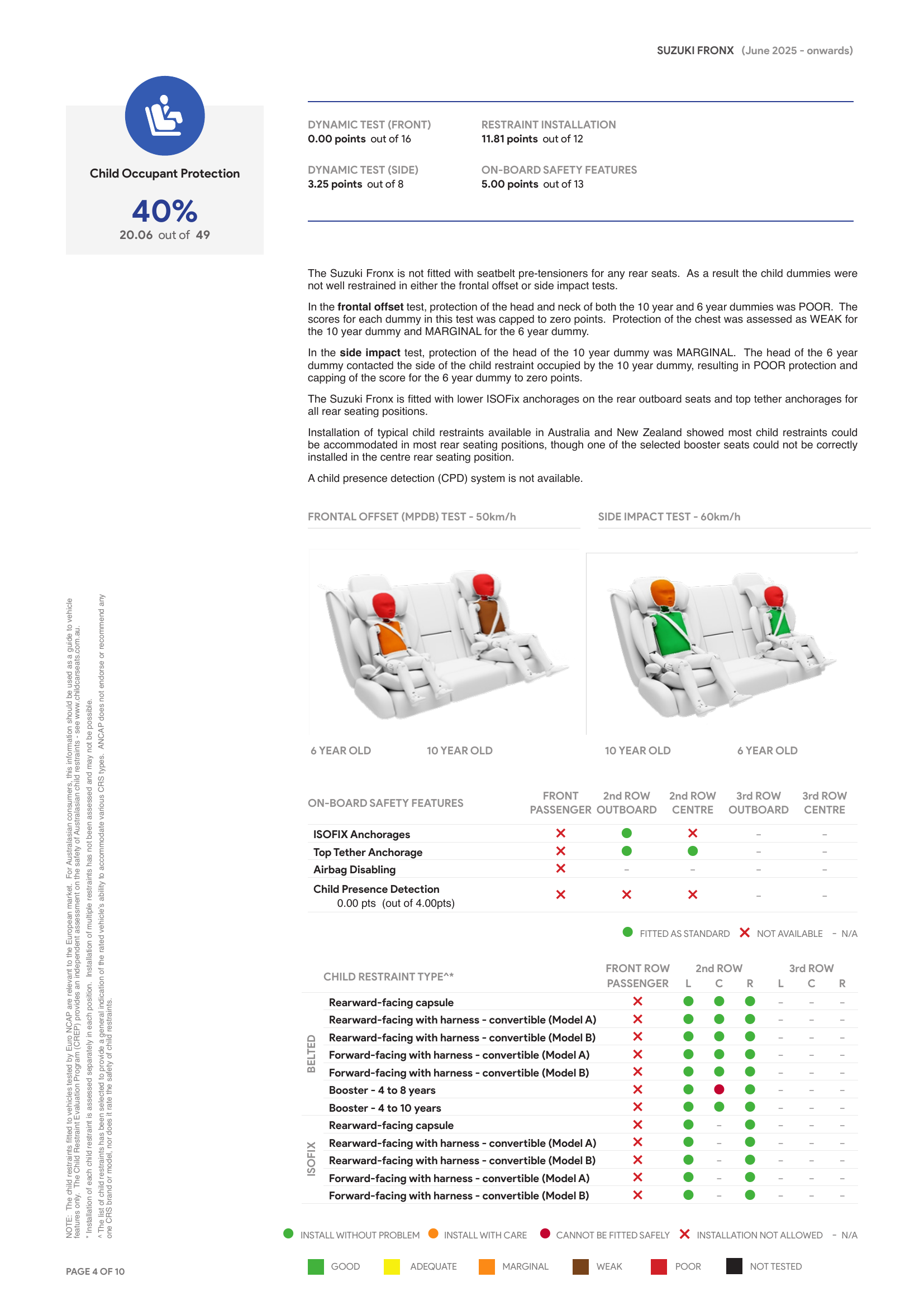 “ANCAP มีความเห็นว่า ผู้โดยสารที่เป็นผู้ใหญ่และเด็กไม่ควรเดินทางในที่นั่งด้านหลังของ Suzuki Fronx จนกว่าจะมีการระบุสาเหตุของความขัดข้องและดำเนินการแก้ไขที่เกี่ยวข้องแล้วเสร็จ”