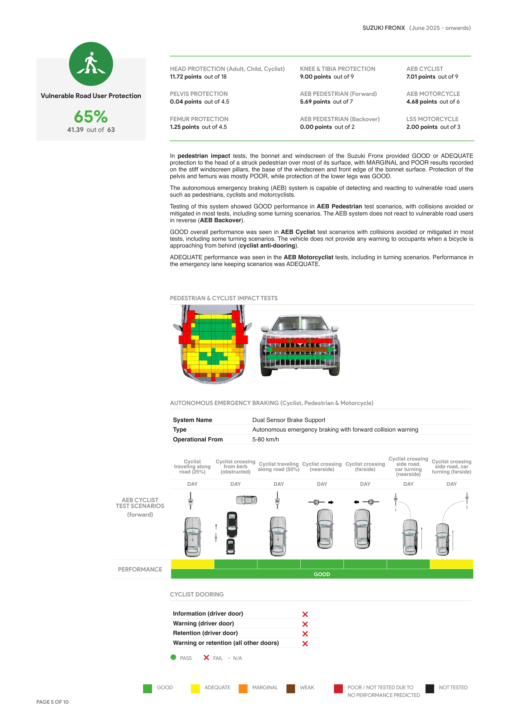ANCAP ระบุว่าคะแนนศูนย์นั้นเกิดจาก “อัตราเร่งของศีรษะสูง” และ “ความตึงเครียดของคอมากเกินไป” ที่ตรวจพบในหุ่นจำลองขนาดเด็ก ซึ่งส่งผลให้หุ่นจำลอง Fronx ได้รับคะแนนโดยรวมเพียงหนึ่งดาว
