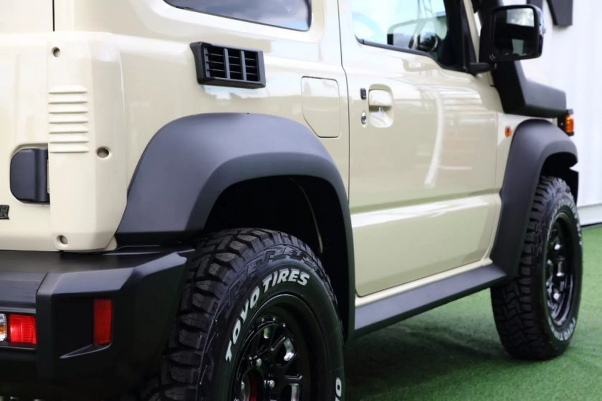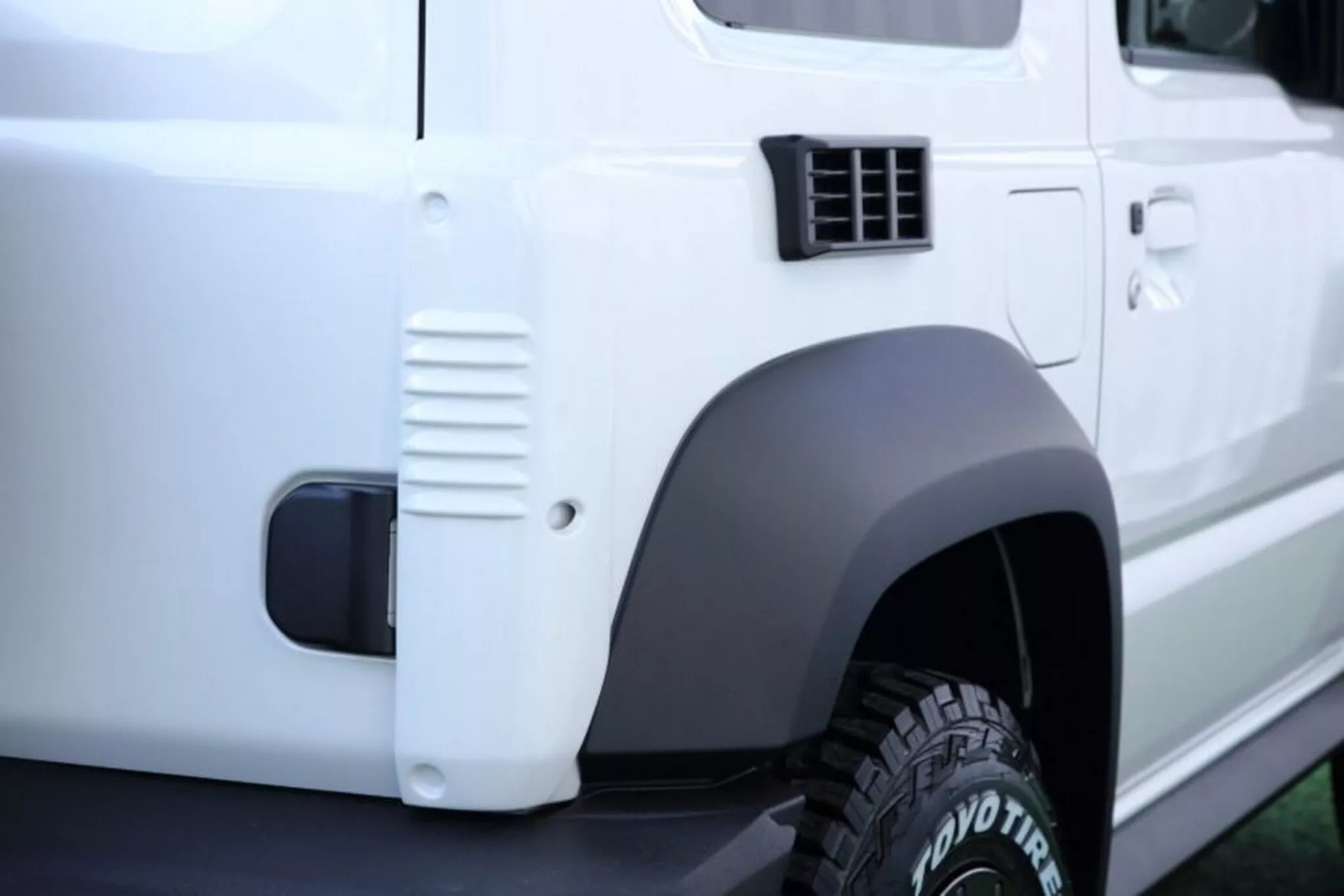 ตัวถังโดยรวมยังเป็น Jimny แต่มีการใส่ลูกเล่นเสริม เช่น ช่องระบาย/ช่องตกแต่งด้านข้าง และงานท้ายรถที่ใส่กริลล์หลอกพร้อมไฟท้ายแบบใหม่ เพื่อยกระดับ “ภาพรวมทั้งคัน” ให้ไปทาง Land Cruiser 70 มากกว่าเดิม ไม่ใช่แค่หน้ารถเหมือนคันอื่น