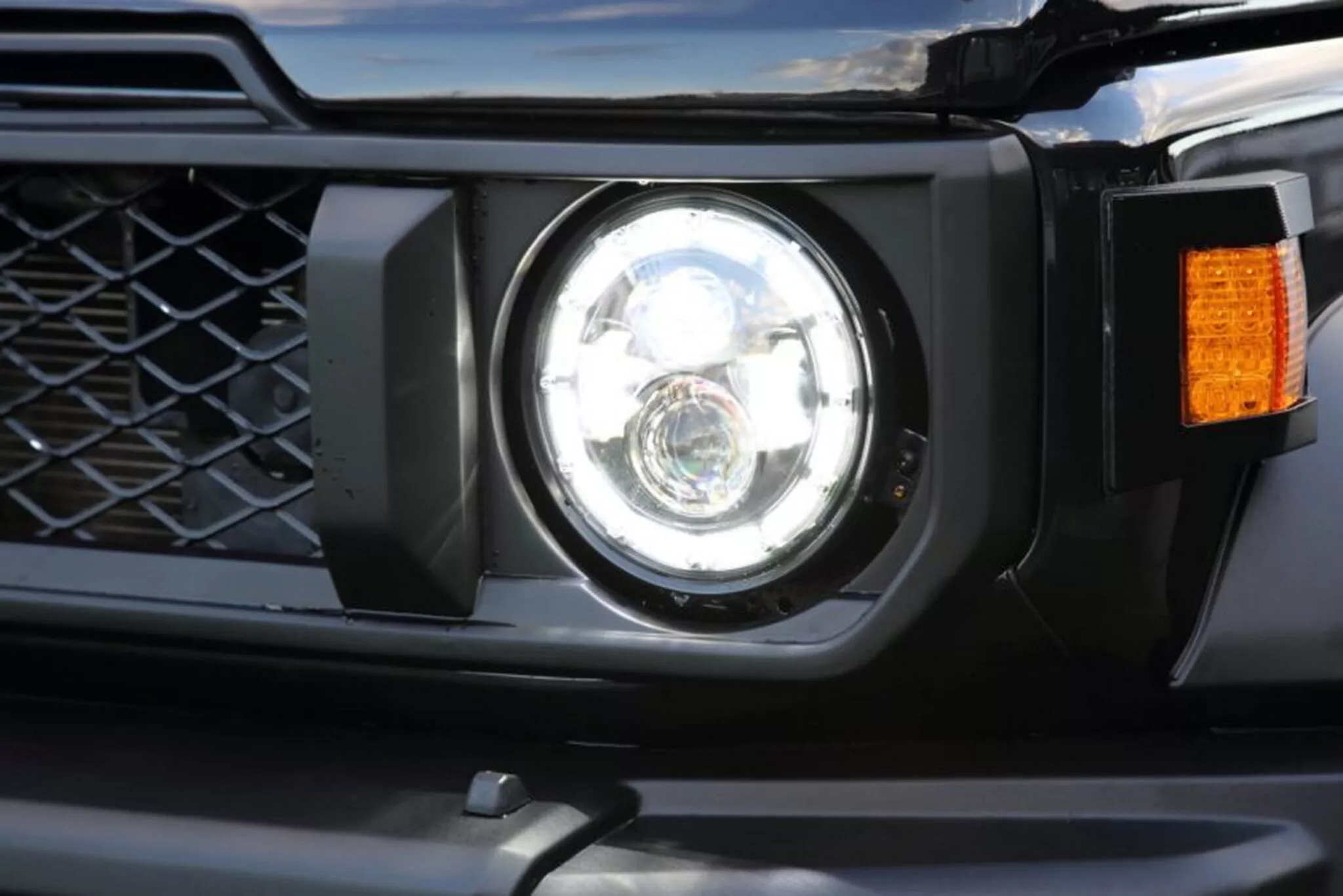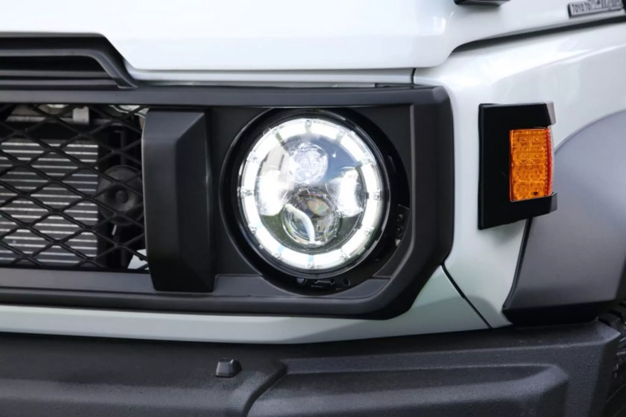 ด้านหน้ารถคือไฮไลต์หลัก: กระจังหน้าใหม่ ไฟหน้า LED ทรงกลม และไฟเลี้ยวสไตล์ย้อนยุค ถูกออกแบบให้ไปในทางเดียวกับ Land Cruiser 70 รุ่นปรับโฉม โดยยังคงกลิ่นอายรถลุยทรงเหลี่ยมแบบดั้งเดิม