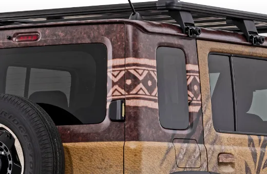 คำตอบของ Suzuki คือ Jimny Nomade รุ่นแนวคิดที่ถ่ายทอดภาพการเดินทางฝ่าทะเลทรายกว้างใหญ่ พร้อมกลิ่นอายของการเอาตัวรอด การตั้งแคมป์ และการออกผจญภัย ซึ่งสอดคล้องกับธีมหลักของ Monster Hunter อย่างชัดเจน