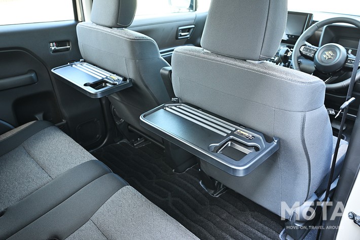 - โต๊ะพับด้านหลังเบาะหน้า (Personal Table) มีที่วางแก้วและที่แขวนถุง