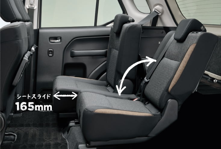 เบาะหลังแยกพับแบบ 5:5 และสามารถสไลด์/เอนพนักพิงแยกฝั่งซ้าย–ขวาได้