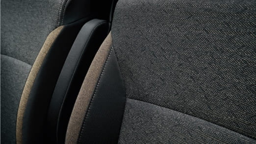 เบาะหุ้มหนังเทียมผสมผ้ากันน้ำ (Leather-like & Water-repellent Fabric) พร้อมเดินด้ายสีน้ำตาล (Brown Stitch)