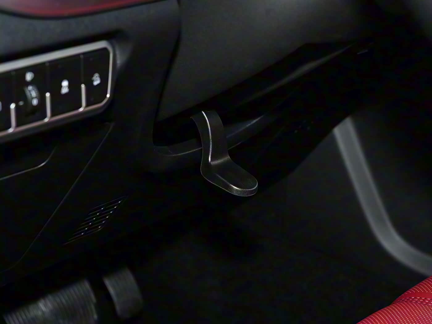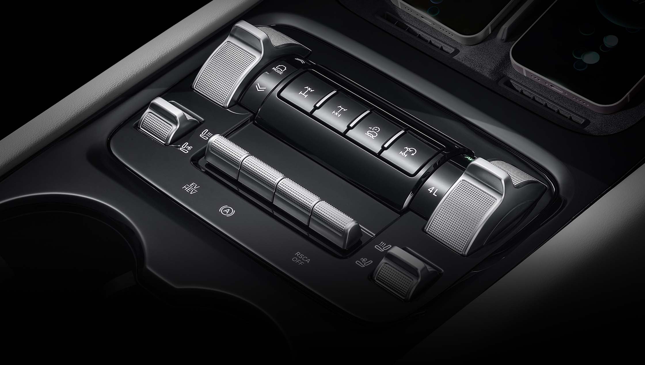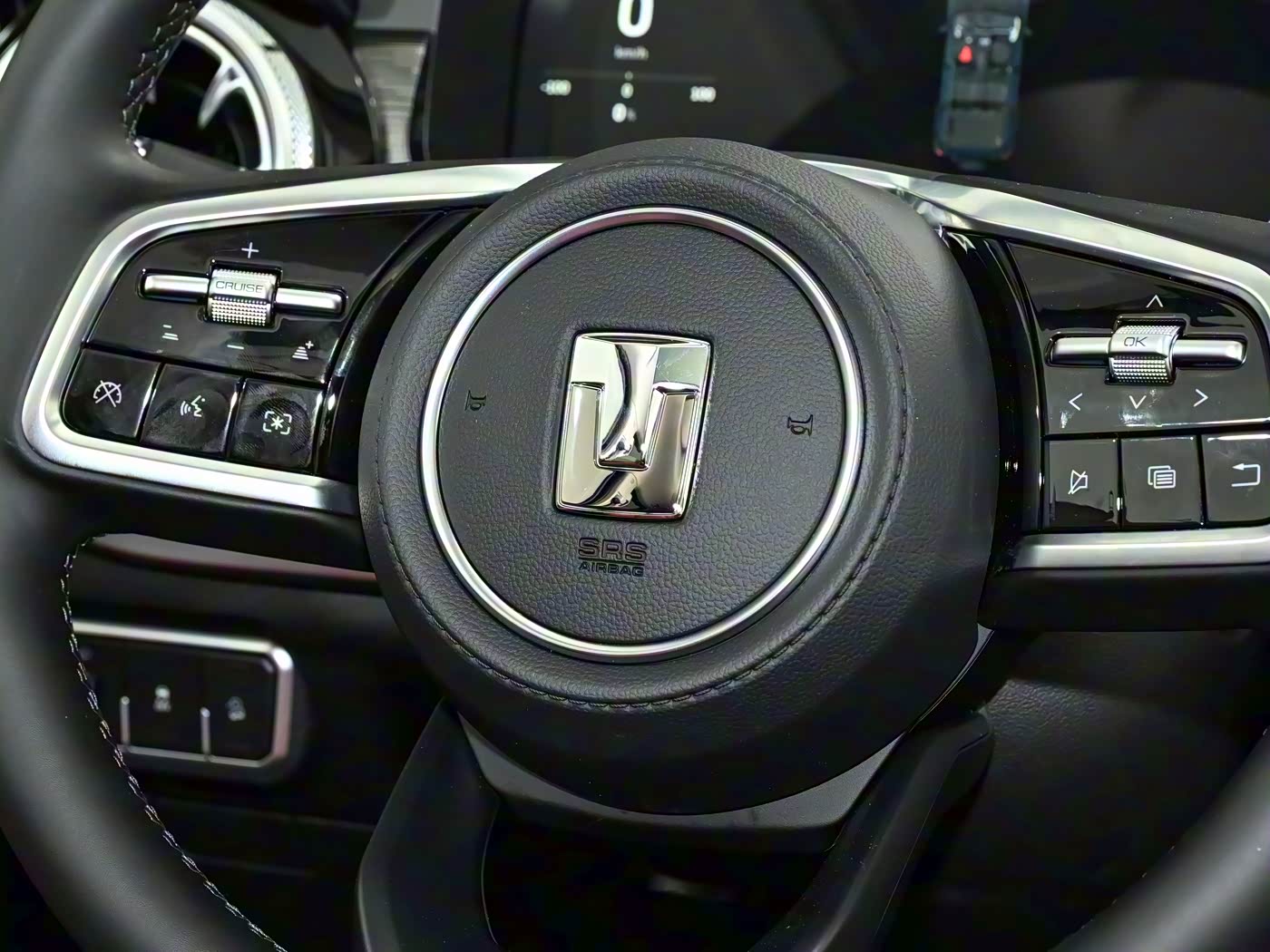 เพิ่มคันเกียร์แบบ “คอพวงมาลัย” ทำให้คอนโซลกลางโล่งขึ้น และแบ่งโซนชัดเจน ชาร์จไร้สายคู่ → ปุ่มควบคุมออฟโรดโลหะ → ช่องแก้วน้ำ