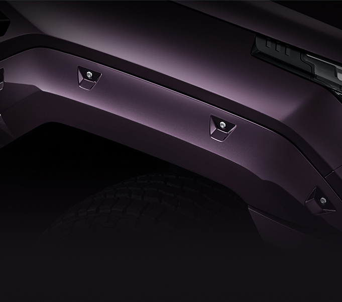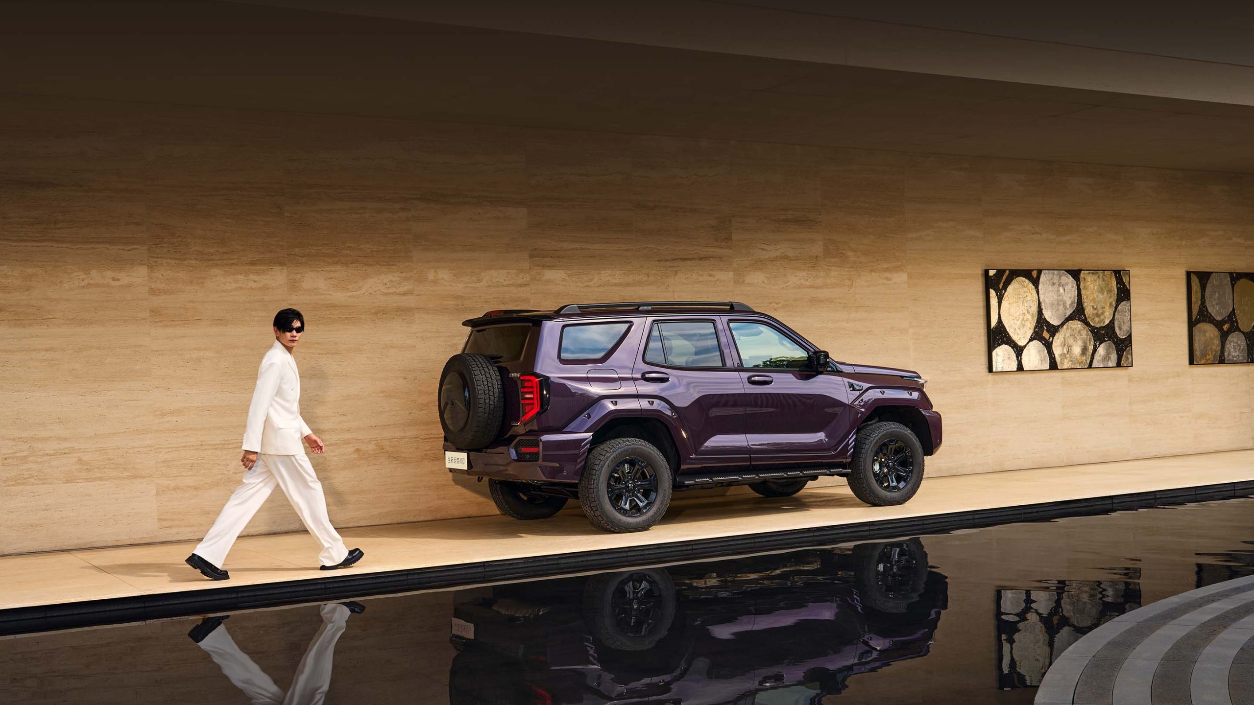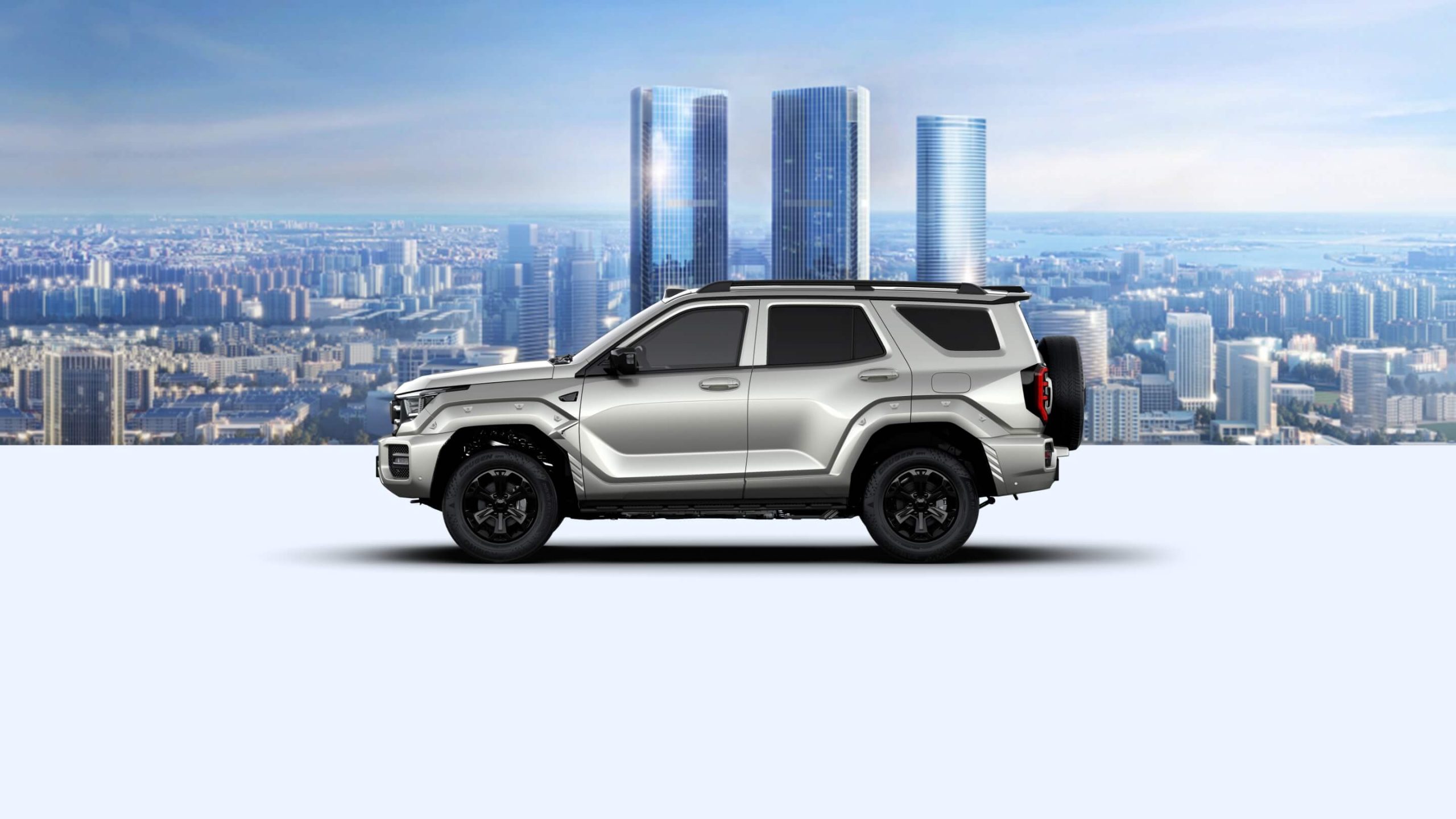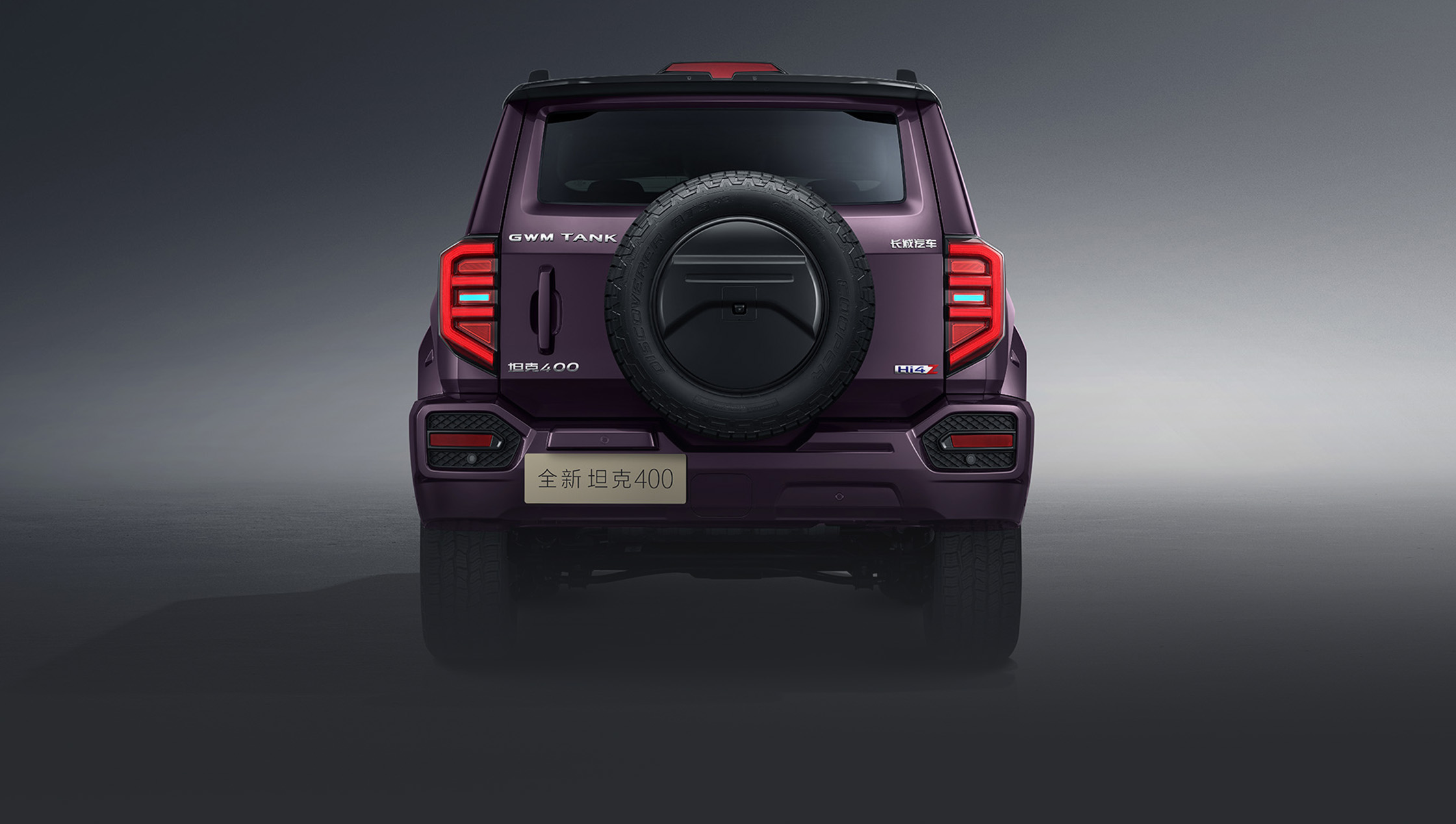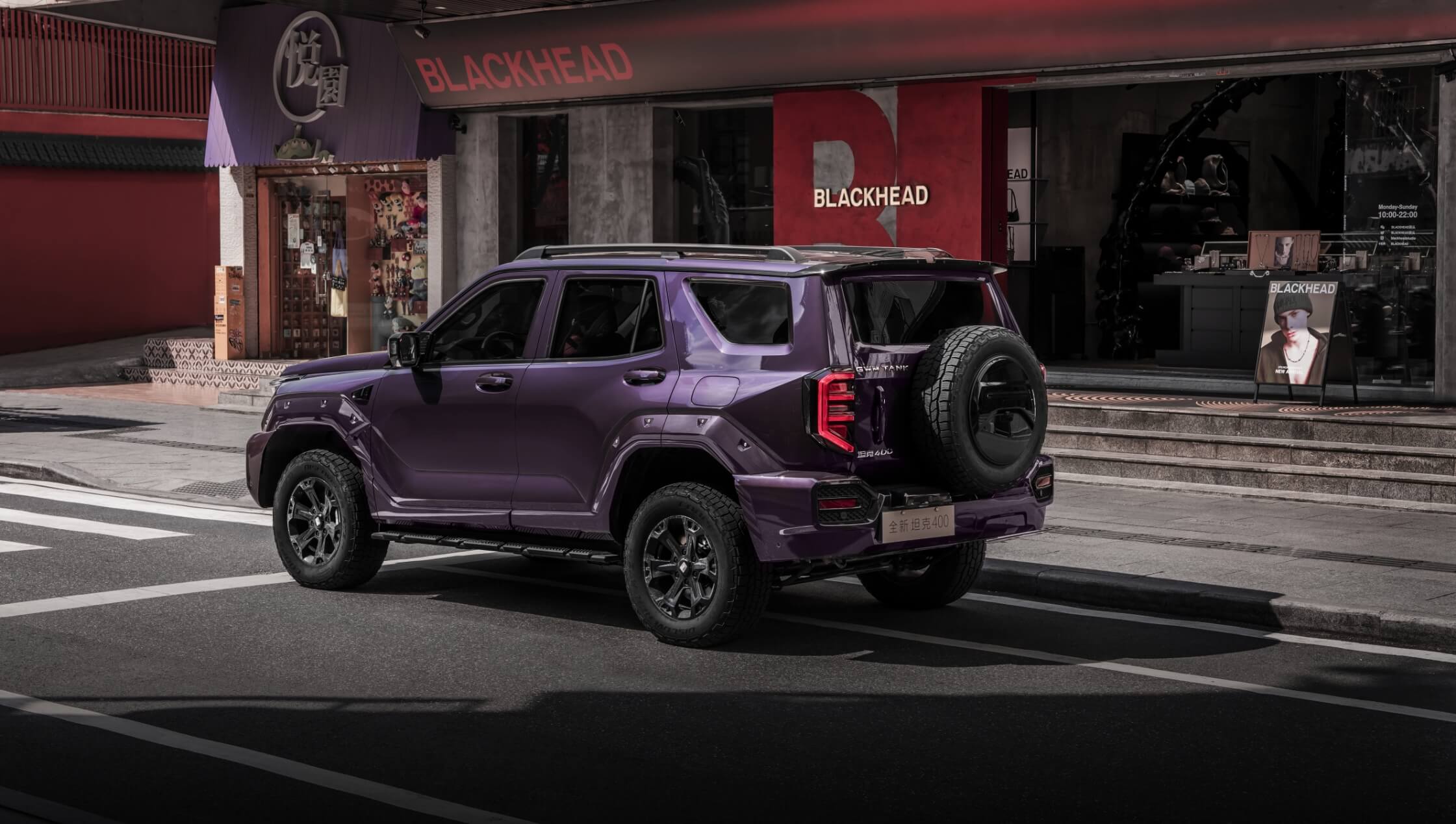 สีตัวถัง 4 เฉด: ดำ Phantom / เงิน Wing / เทา Nebula / ม่วง Dunhuang (สีโปรโมต) ท้ายรถยังคงใช้ ยางอะไหล่แบบแขวนหลัง + ประตูเปิดข้าง สำหรับการเข้าถึงสัมภาระเร็วแบบสายลุย และเพิ่มไฟสัญญาณ ADAS “แถบสีฟ้า” แจ้งเตือนรอบคัน